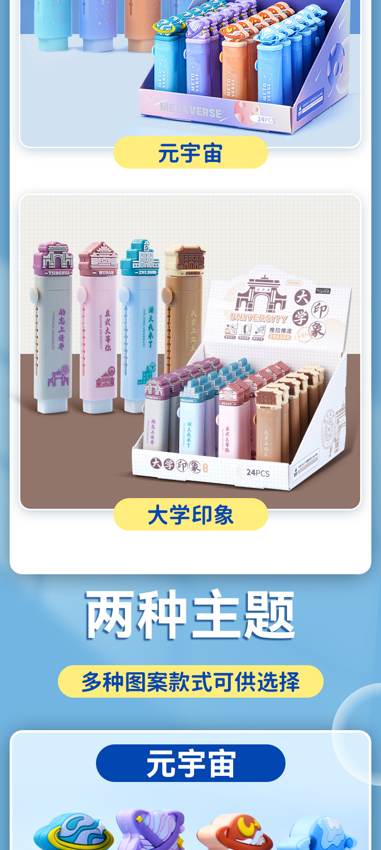 만화 푸시-자국을 남기지 않고 지우개 청소 높은 색상 값 개폐식 연필 지우개 학생 문구 지우개스토어 가기