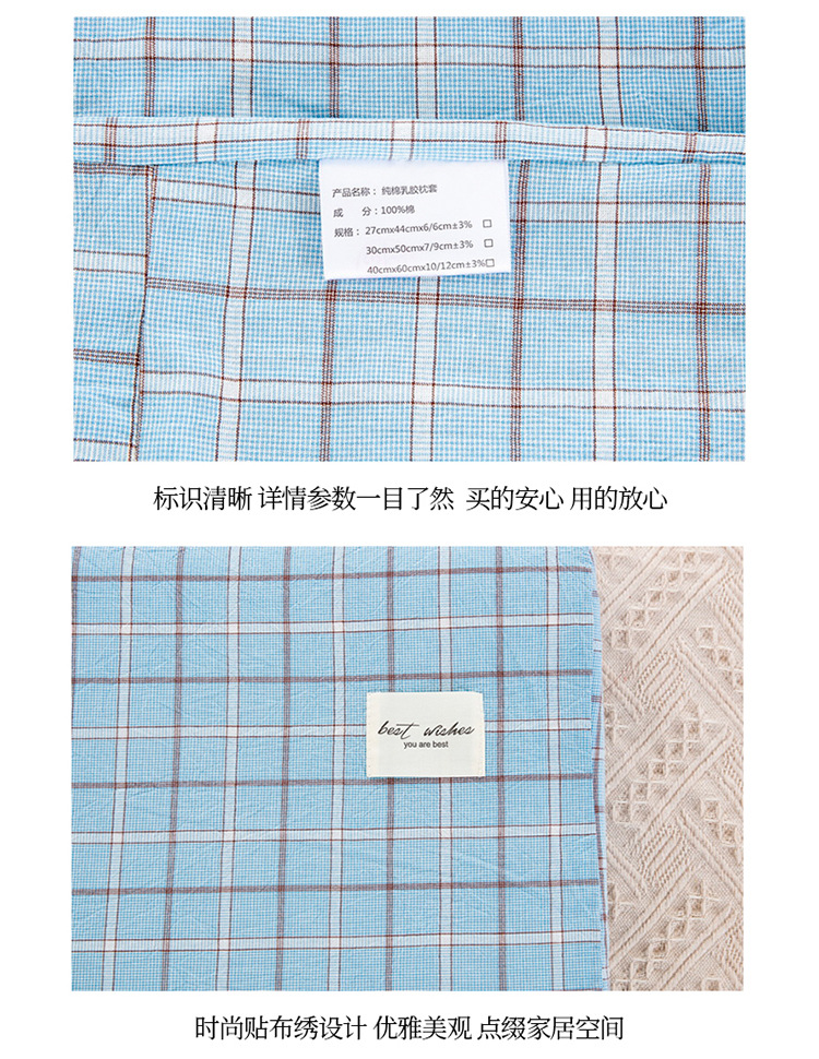 도매 라텍스 베개 베갯면화 세척 면봉 줄무늬 격자 무늬 어린이 성인 면화 베갯잇이 국경스토어 가기
