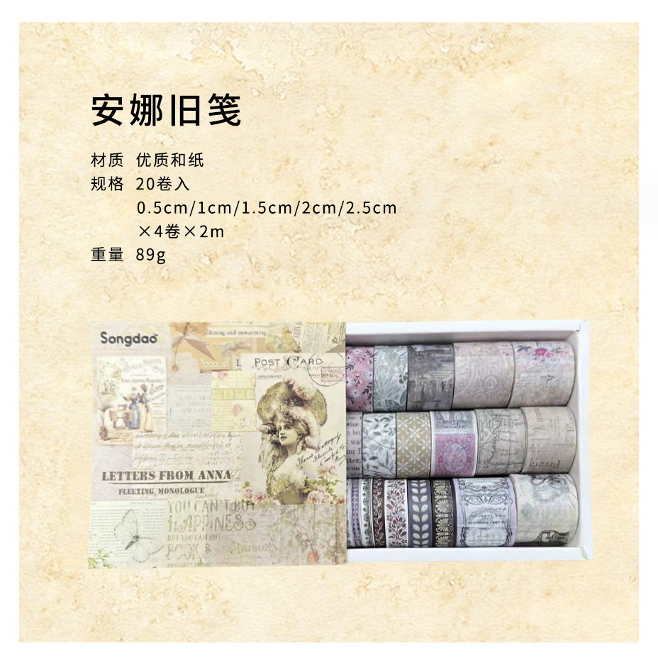 20 선물 상자 앨범 일기 diy 장식 손 계정 스티커와 함께 손 계정 교차 및 종이 테이프 세트에 포함