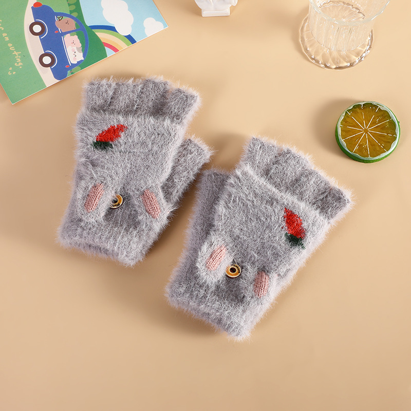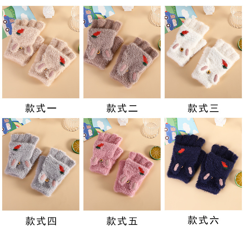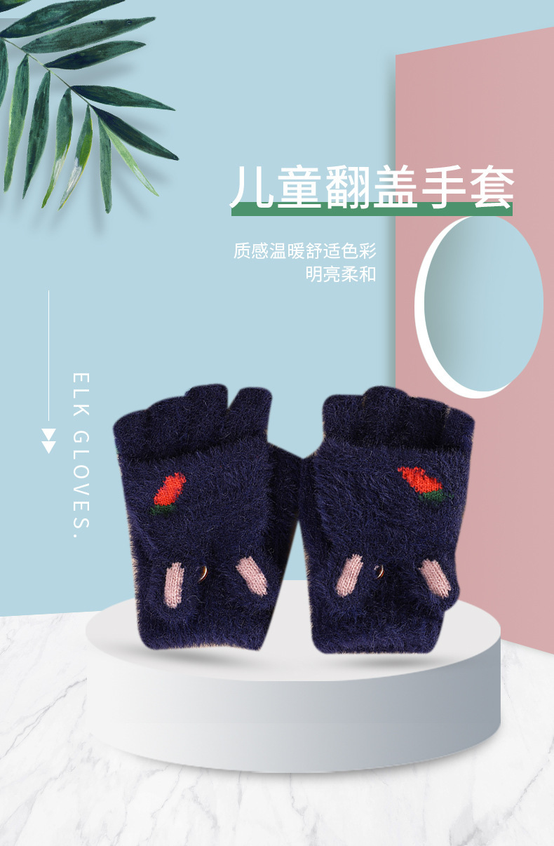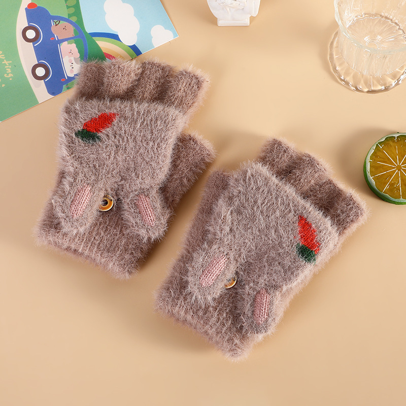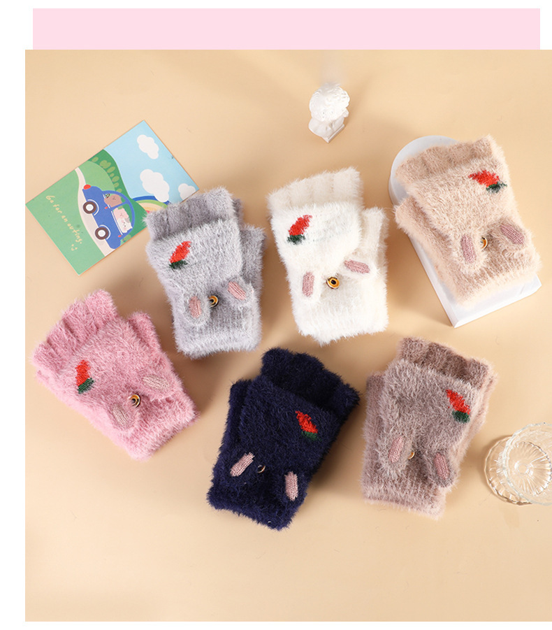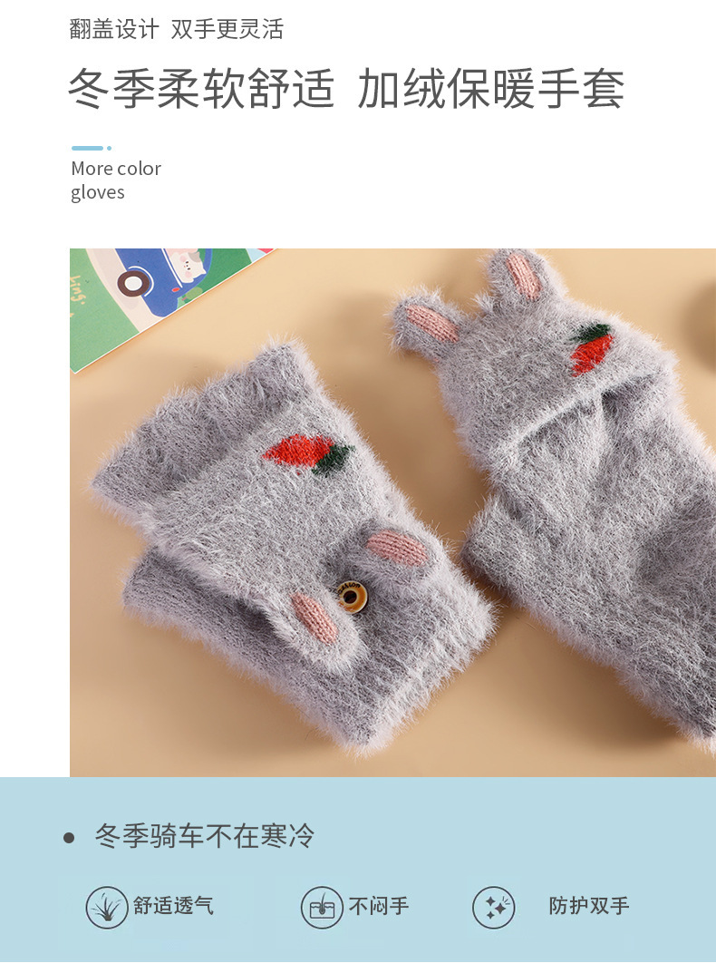 겨울 어린이용 플립탑 반장갑 맞춤형 토끼귀 보온 터치스크린 장갑 플러스 벨벳 두꺼운 야외 라이딩 장갑