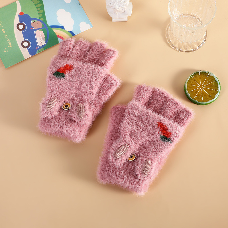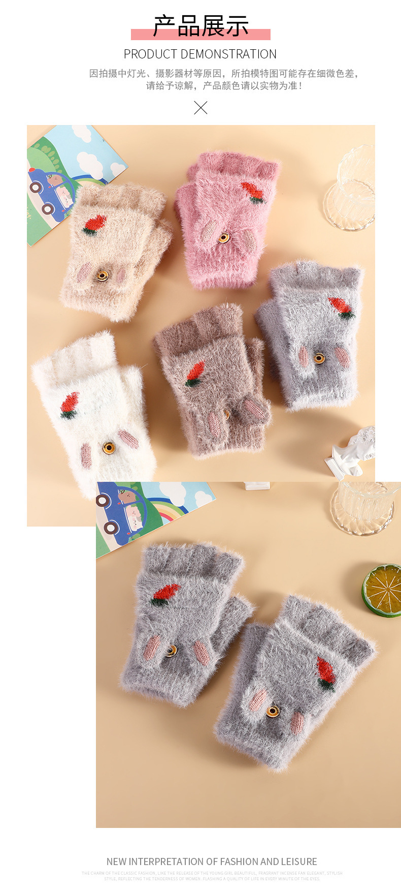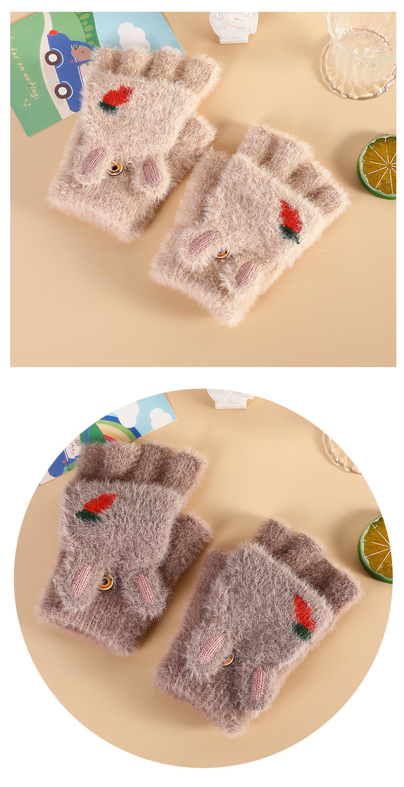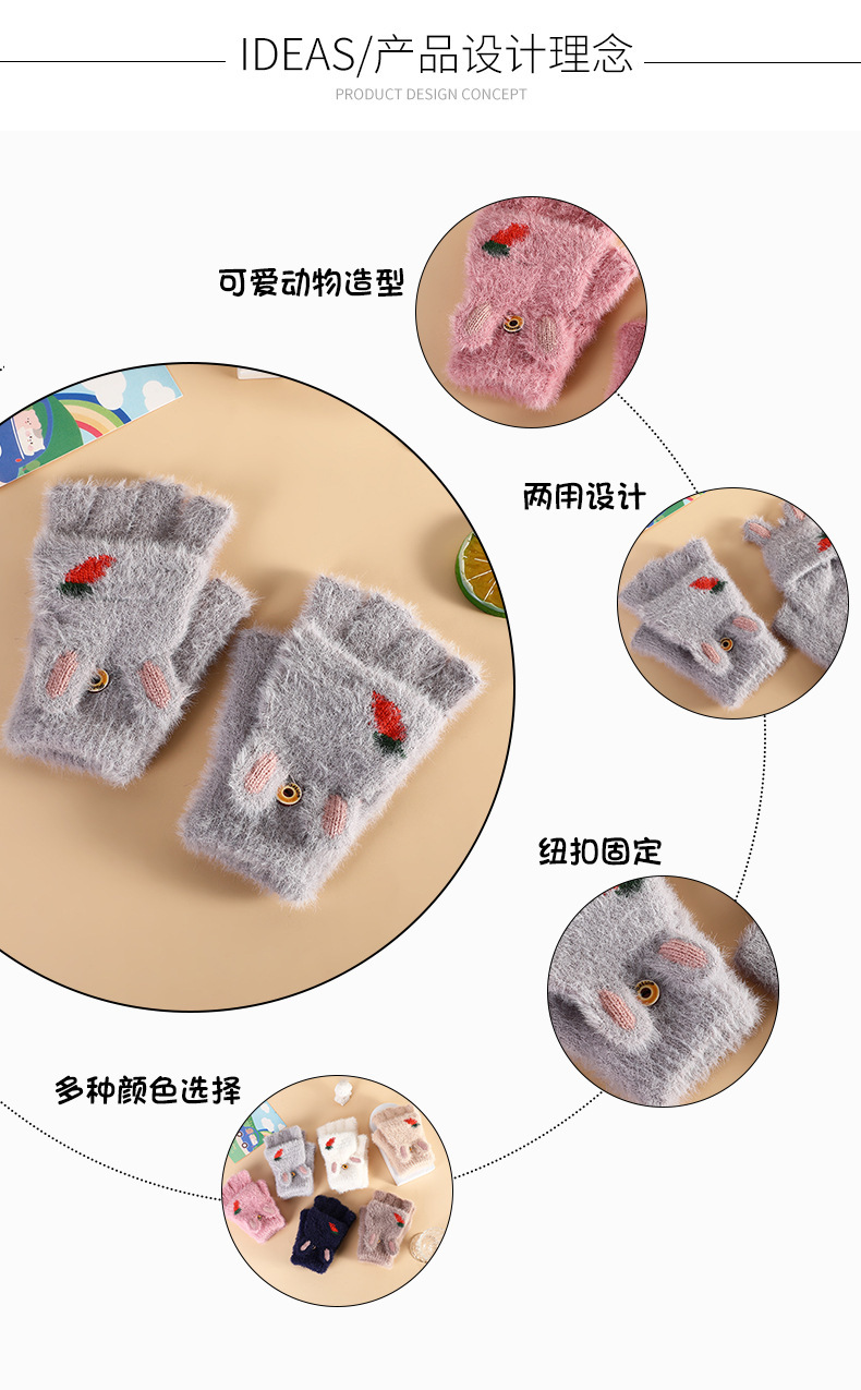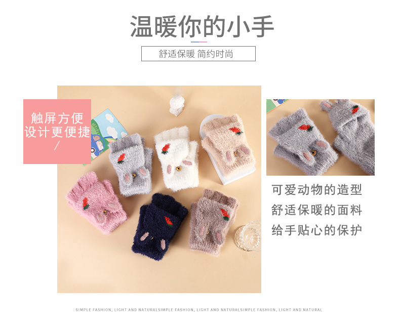 겨울 어린이용 플립탑 반장갑 맞춤형 토끼귀 보온 터치스크린 장갑 플러스 벨벳 두꺼운 야외 라이딩 장갑