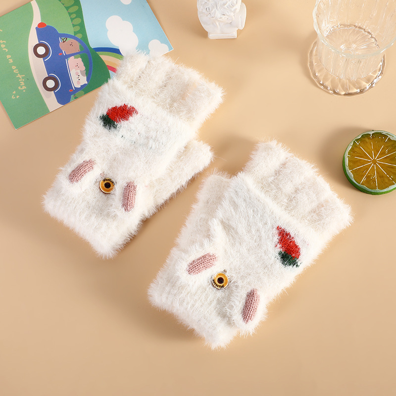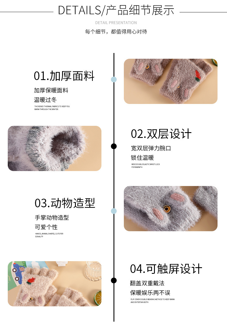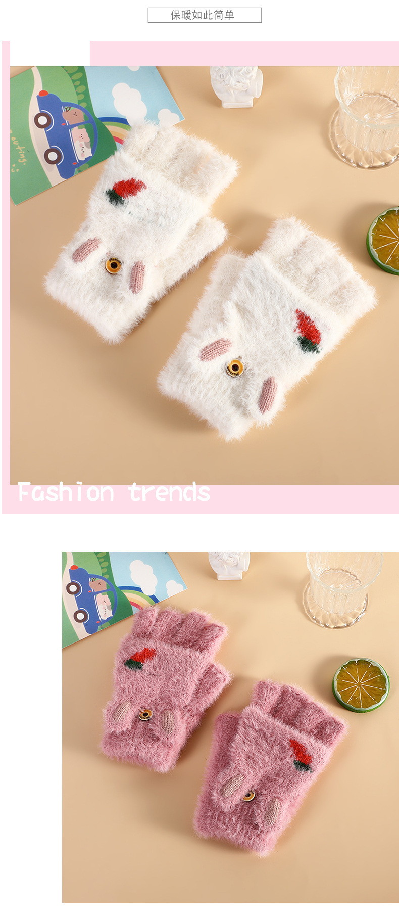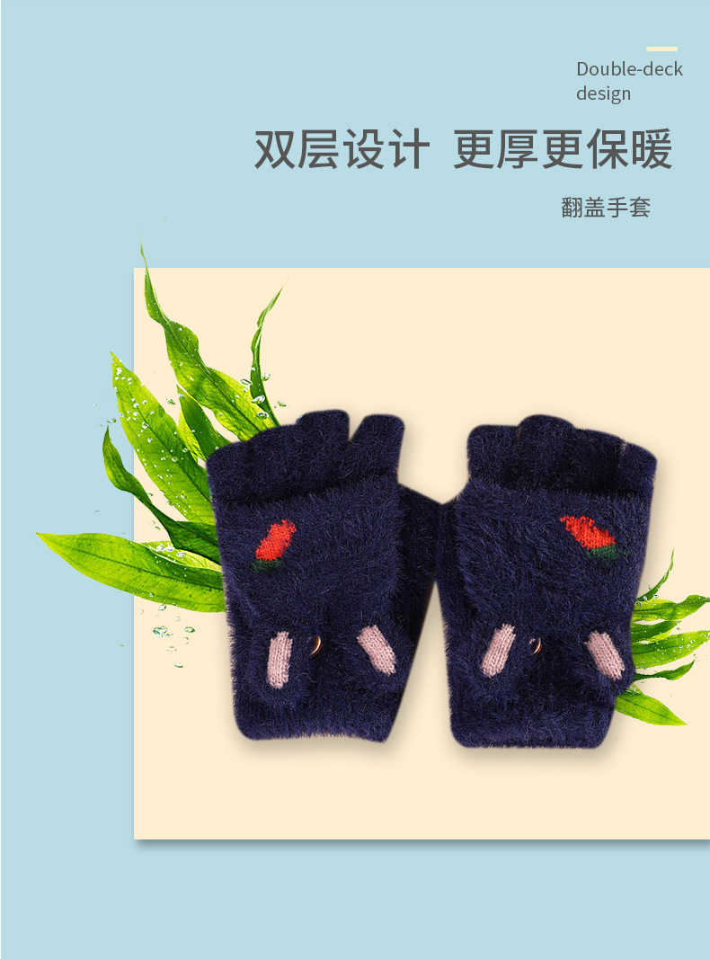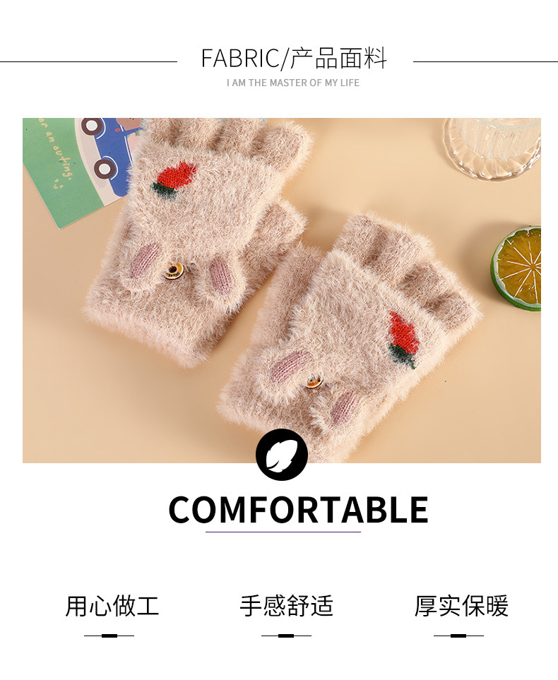 겨울 어린이용 플립탑 반장갑 맞춤형 토끼귀 보온 터치스크린 장갑 플러스 벨벳 두꺼운 야외 라이딩 장갑