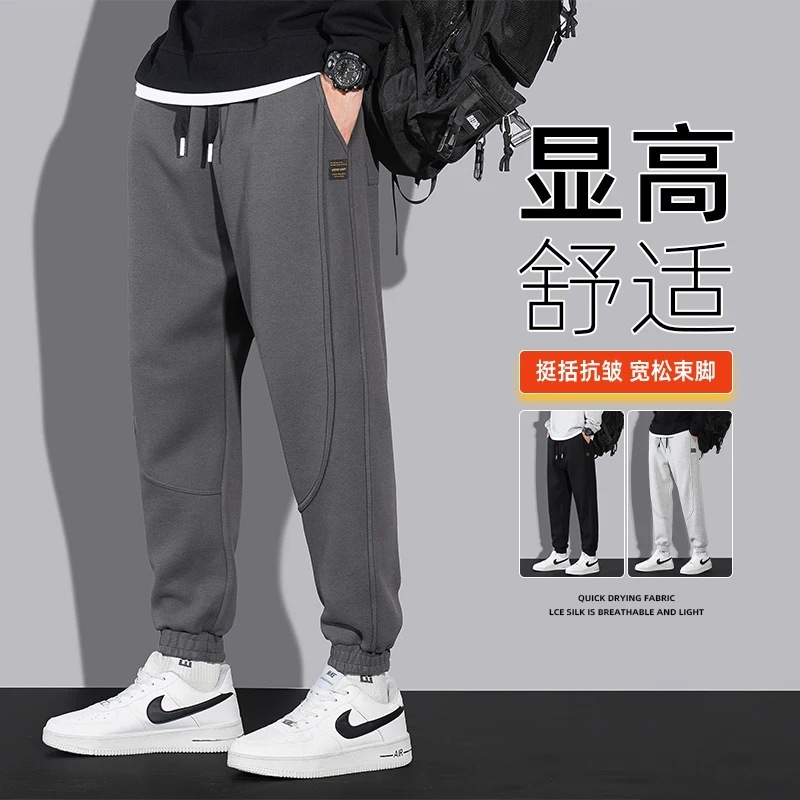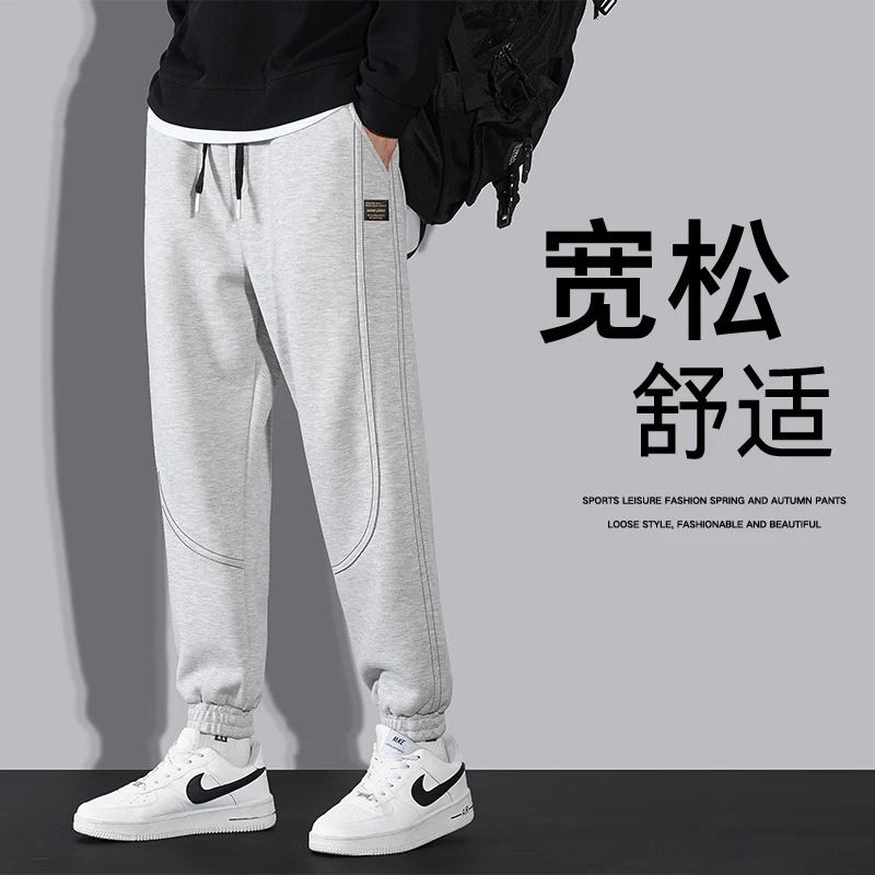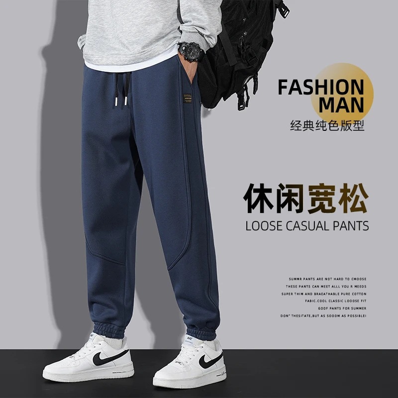 M-8XL 봄과 가을 남성 캐주얼 바지 스포츠 바지 홍콩 스타일 유행 다리 운동복 바지 느슨한 다리 바지 가을 옷