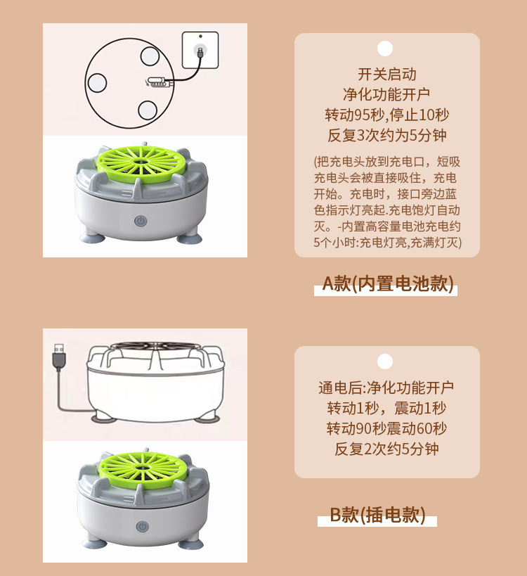 • B 회전 + 진동 + 전기 분해 기능 (플러그인 모델)