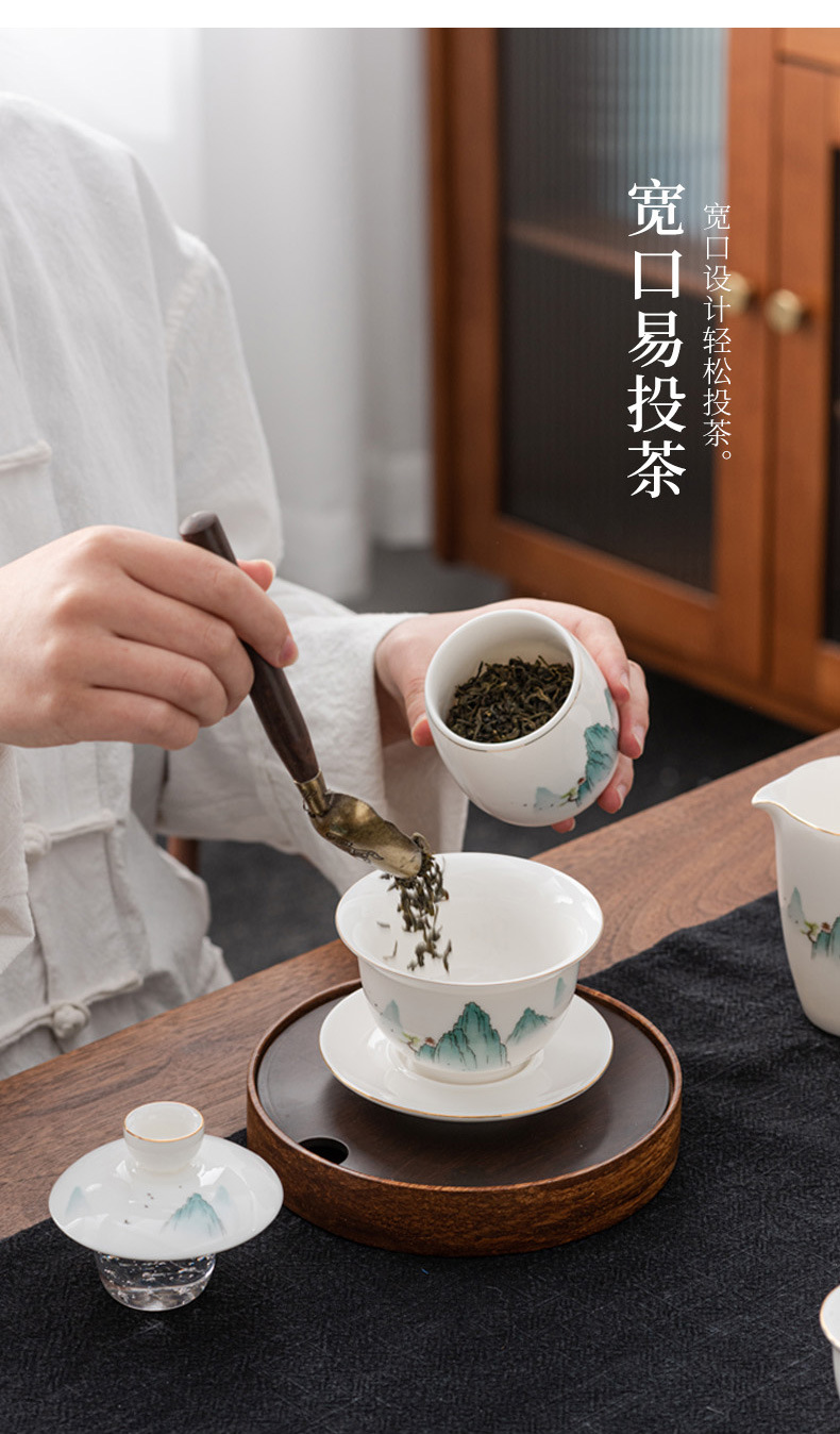 Suet 옥 화이트 도자기 쿵푸 차 세트 세트 홈 라이트 럭셔리 고급 고급 2023 새로운 스타일 그릇 찻주전자 찻잔 선물 상자스토어 가기