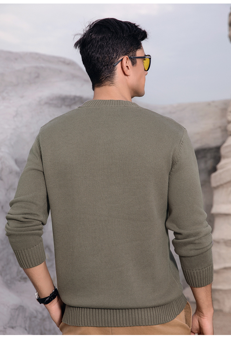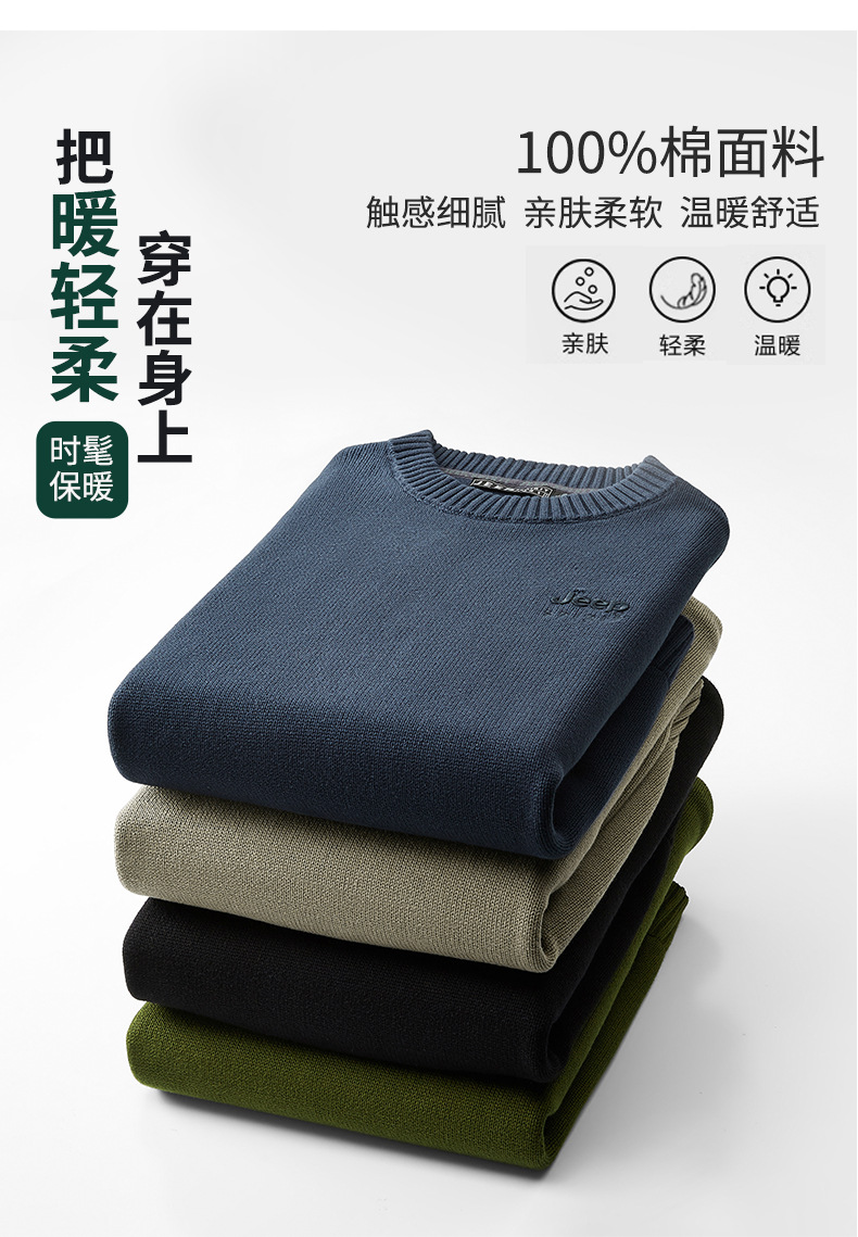 JEEP SPIRIT 퓨어 코튼 스웨터 남성용 겨울 따뜻한 캐주얼 트렌디 패션 솔리드 컬러 루즈베이스 스웨터스토어 가기