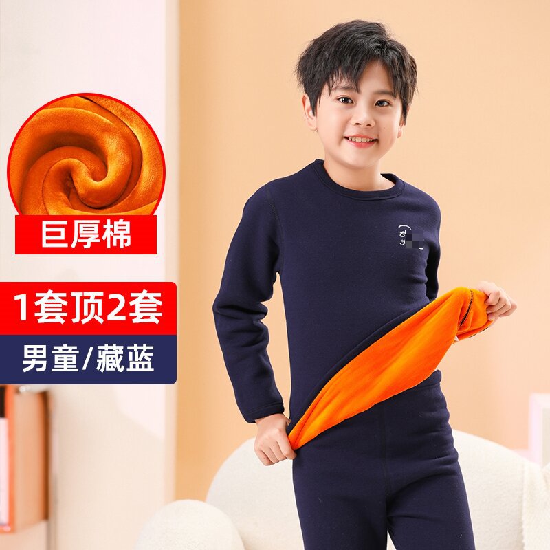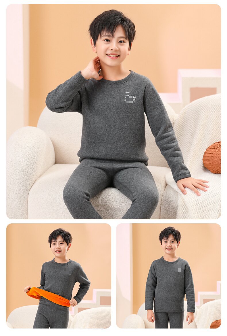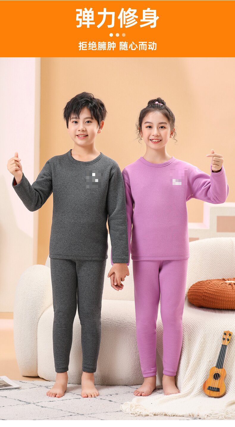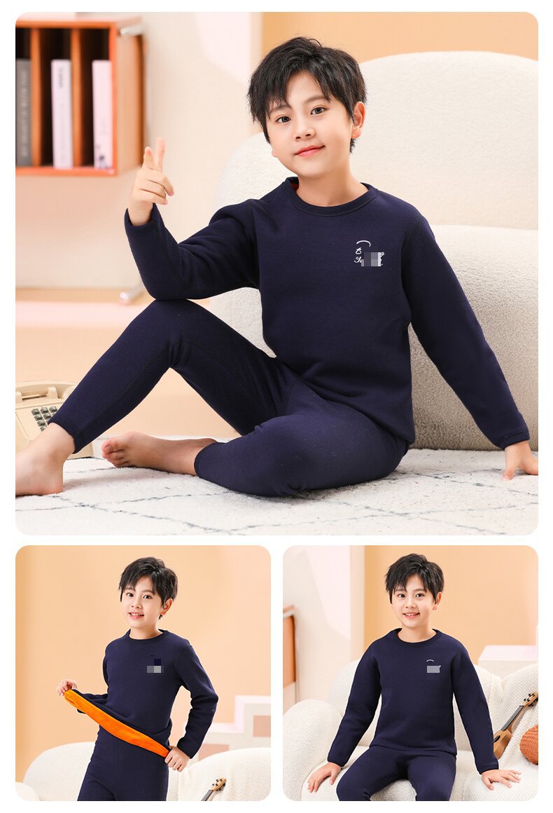 겨울 두꺼운 중형 및 대형 어린이 열 속옷 어린이 두껍게 기모 따뜻한 옷 아기 가을 옷 긴 바지 바닥 세트