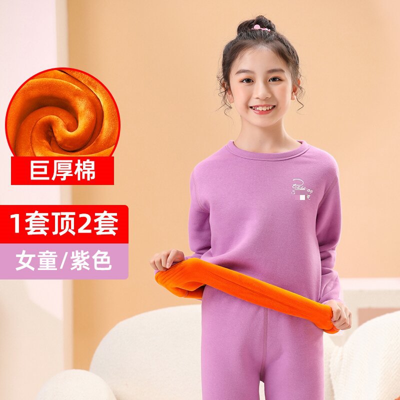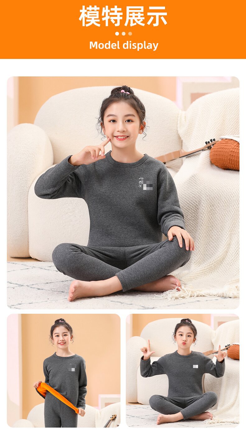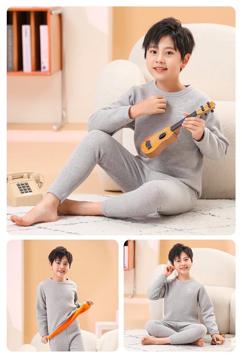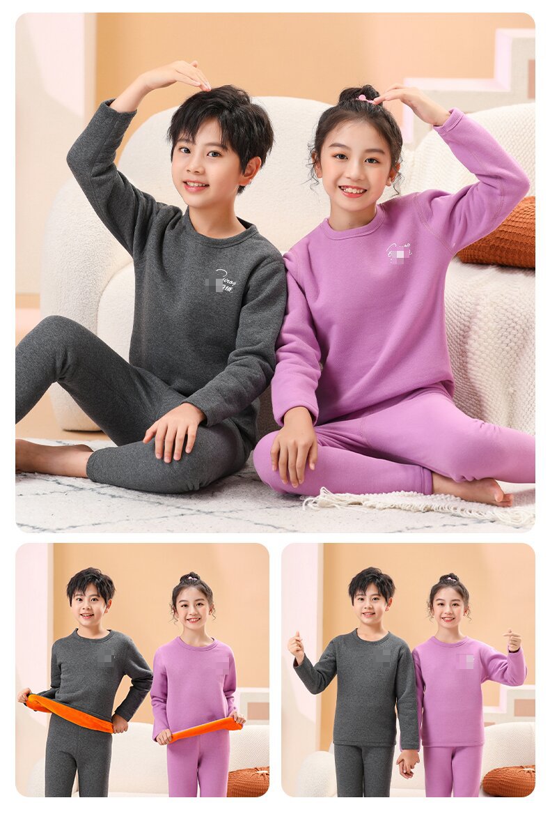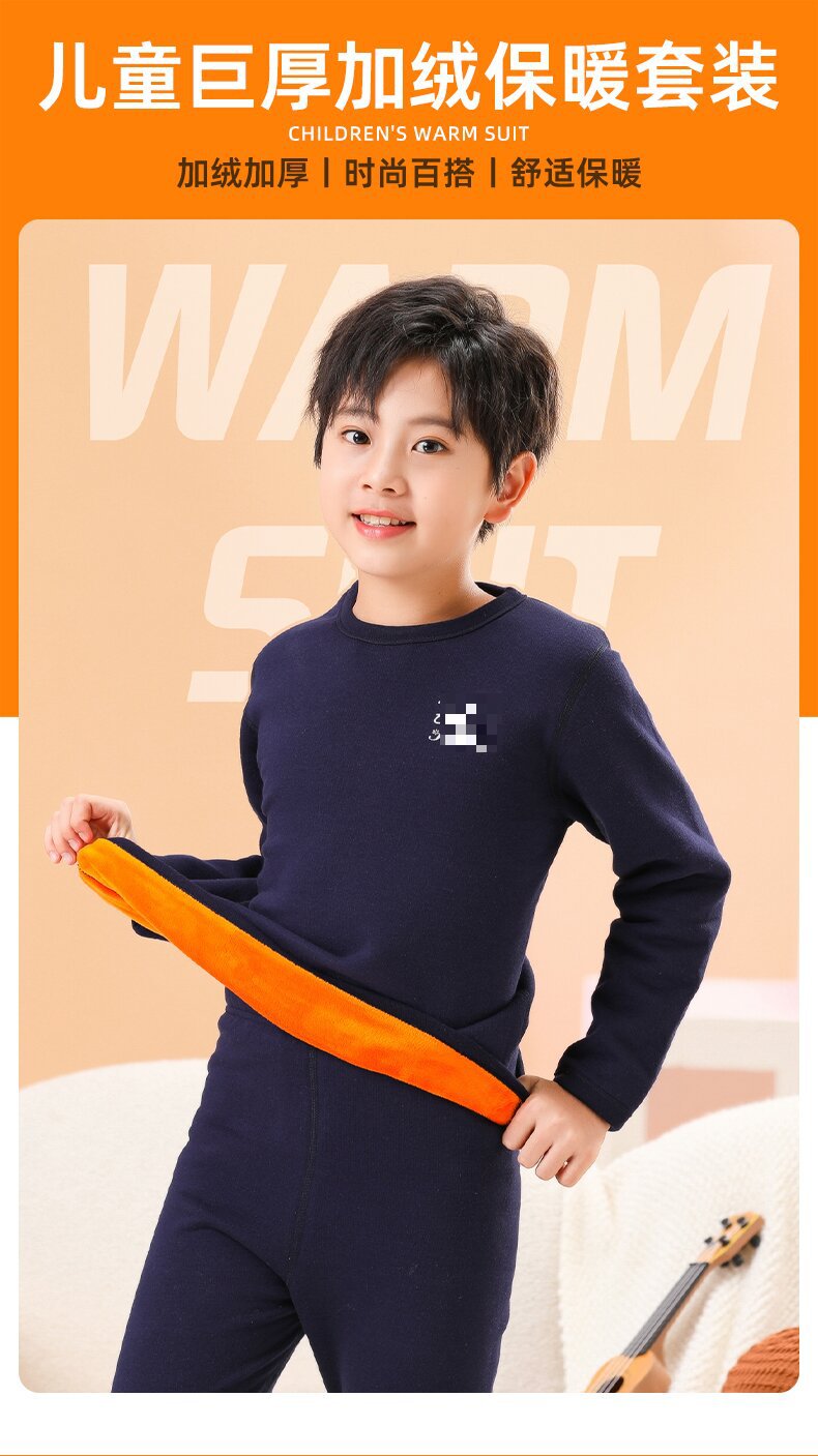 겨울 두꺼운 중형 및 대형 어린이 열 속옷 어린이 두껍게 기모 따뜻한 옷 아기 가을 옷 긴 바지 바닥 세트