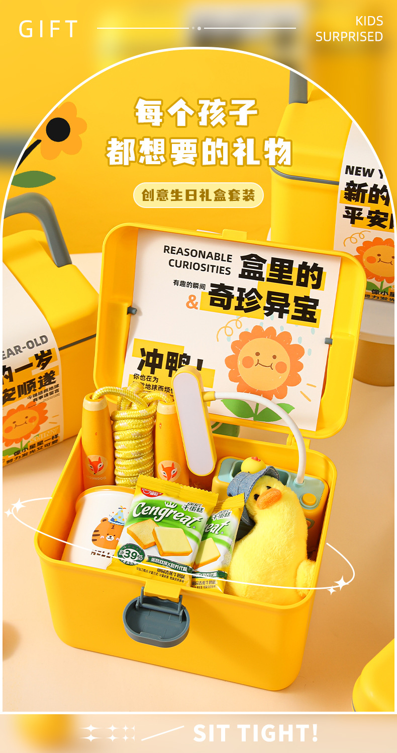 • 보관 상자 [로프 스킵 + 노랑 오리 펜던트 + 베이비 컵 + 야간 조명 + 비스킷 * 2](넷 봉투)