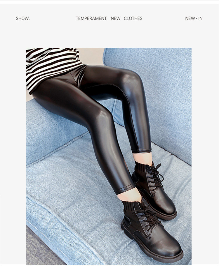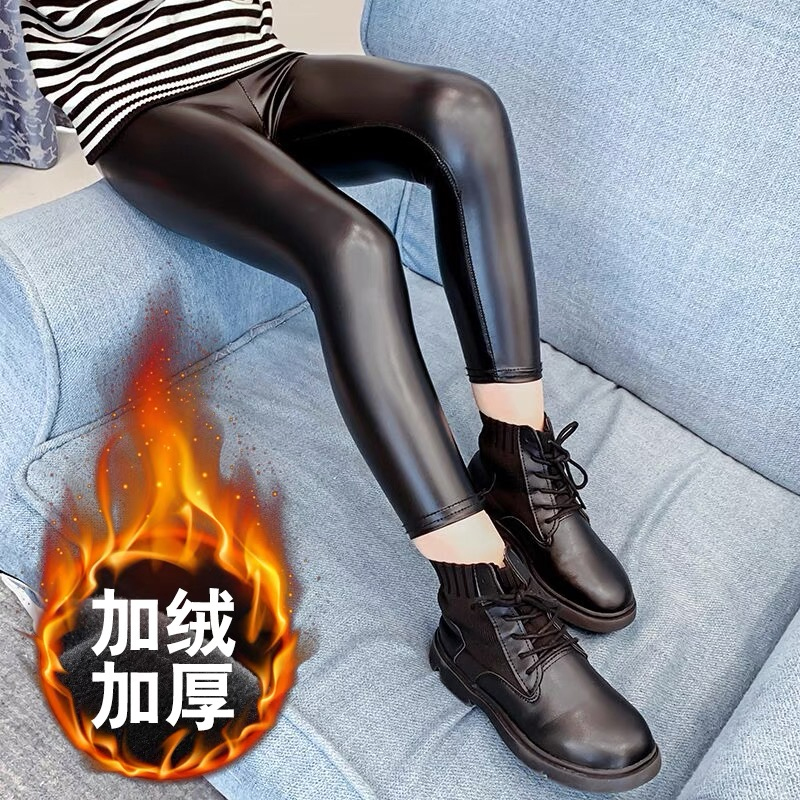 여아 가죽 바지 가을 겨울 의류 Puleather 아기 슬림 핏 만능 탄성 바지 어린이 기모 두꺼운 겉옷 내부 바지스토어 가기