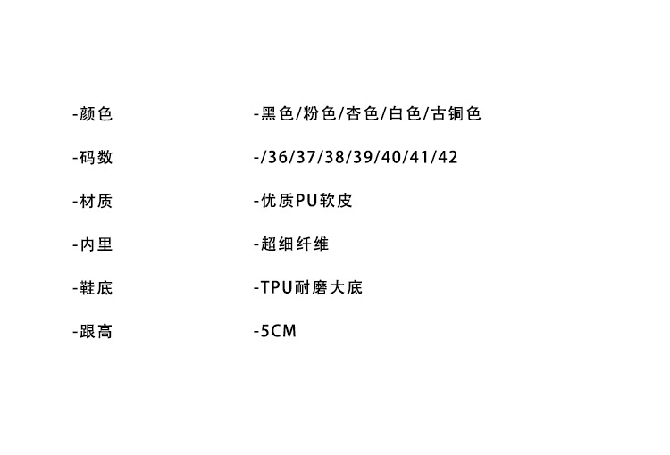 【颜色】: 黑色 , 杏色 , 白色 ,粉色 ,古铜色