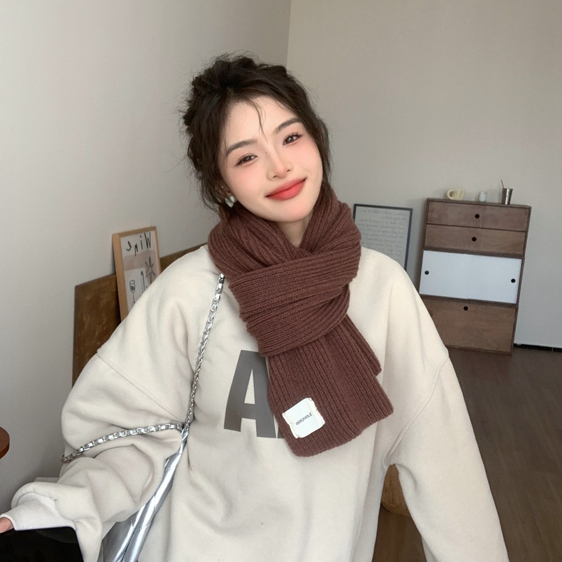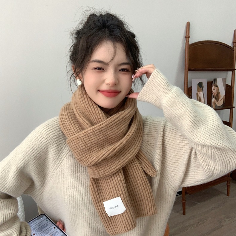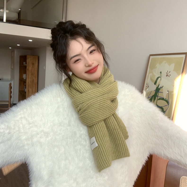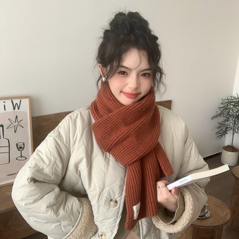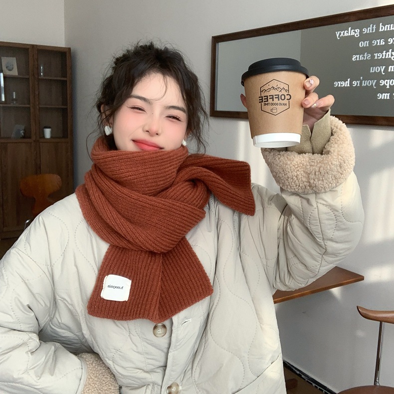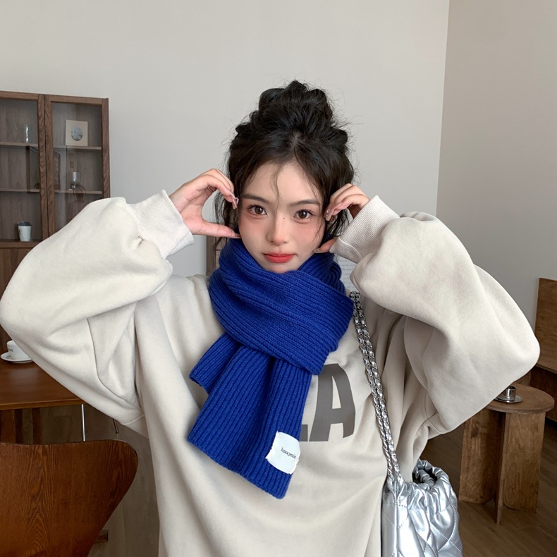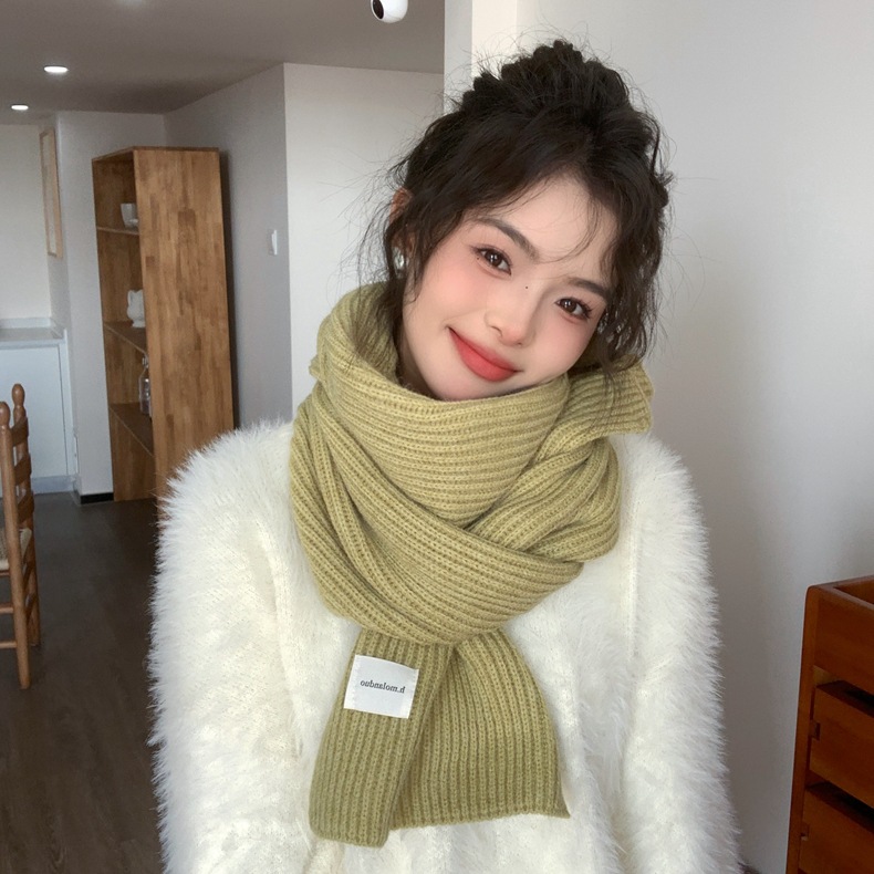 니트 울 스카프 여성 겨울 2023 새로운 고급 다목적 한국 단색 따뜻한 학업 스타일 짧은 스카프