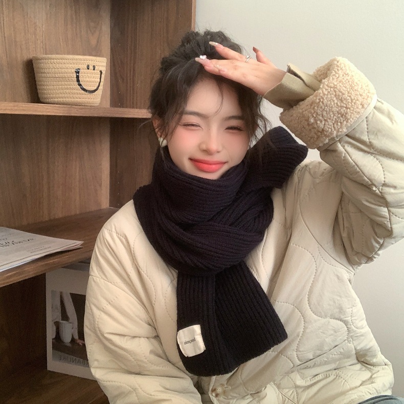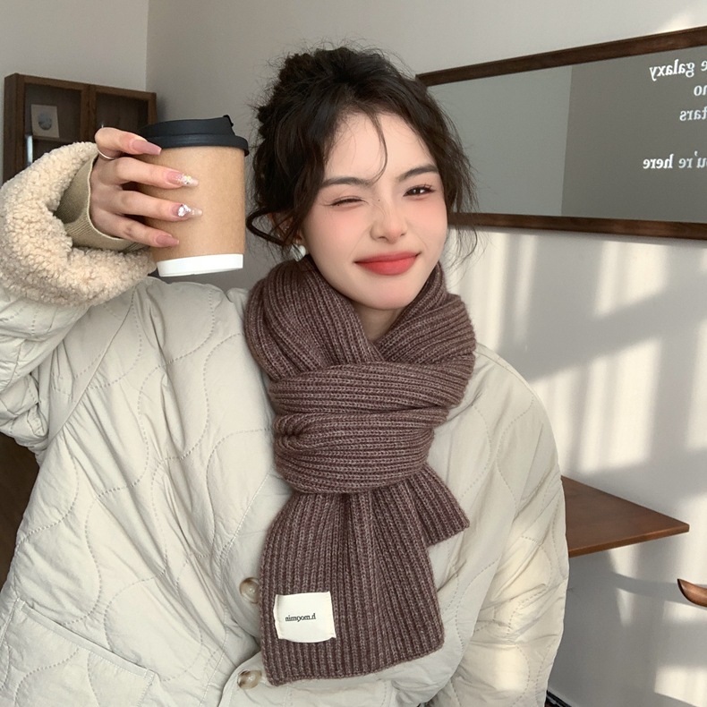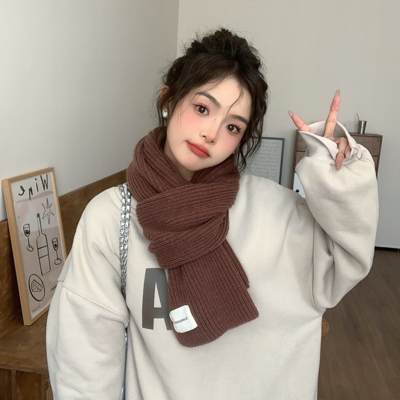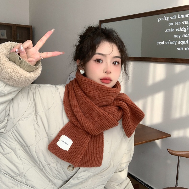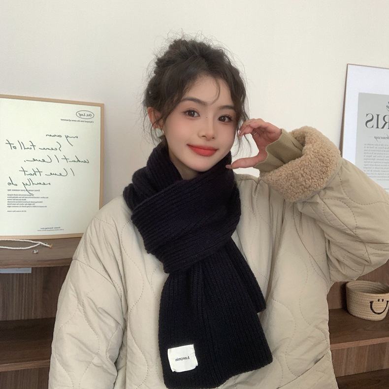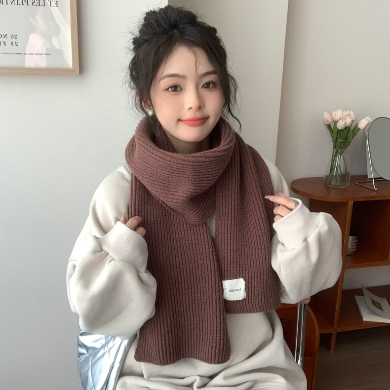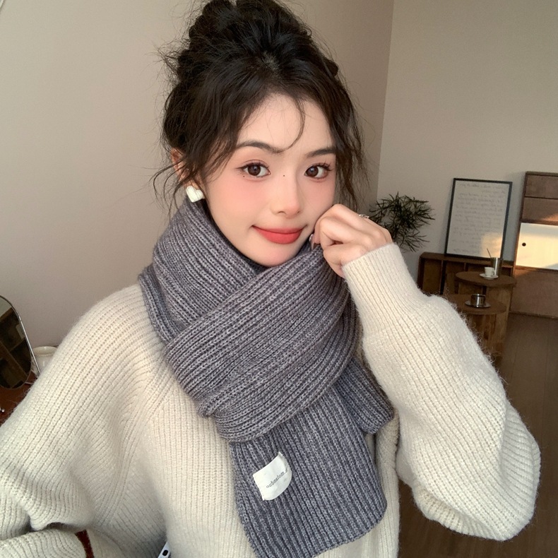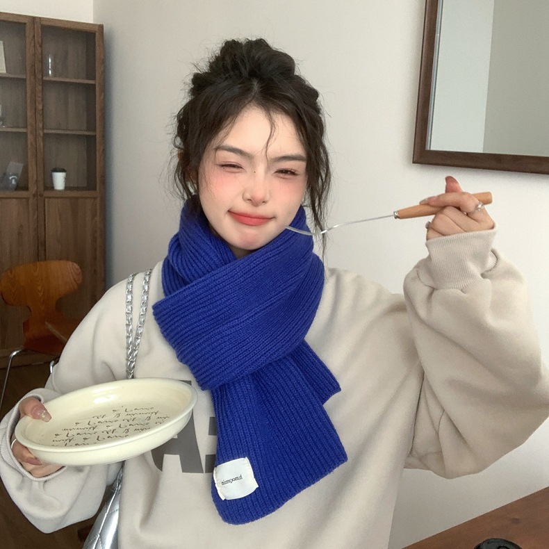니트 울 스카프 여성 겨울 2023 새로운 고급 다목적 한국 단색 따뜻한 학업 스타일 짧은 스카프
