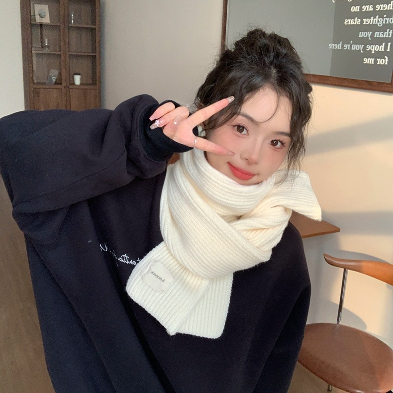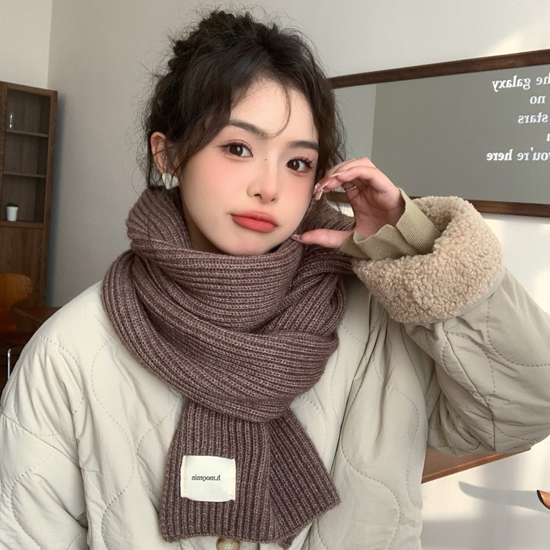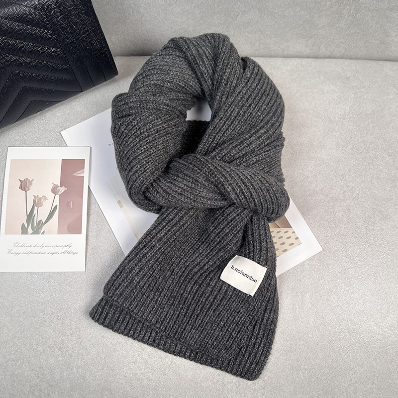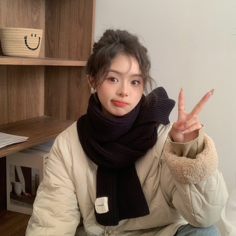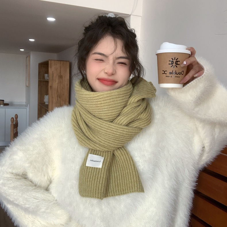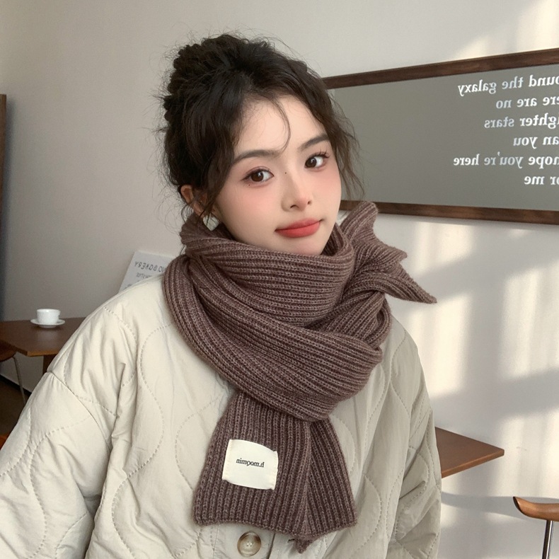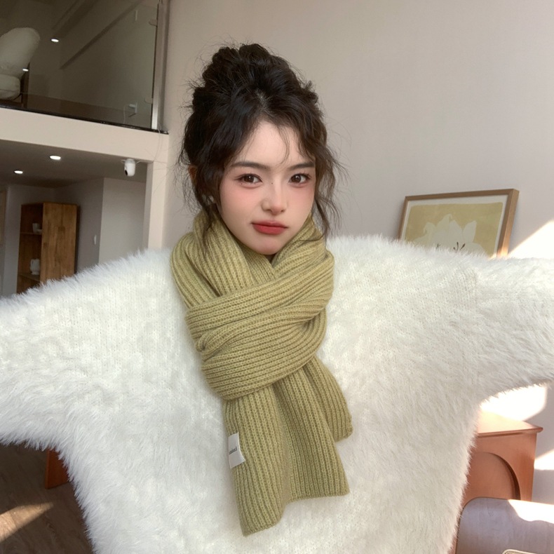 니트 울 스카프 여성 겨울 2023 새로운 고급 다목적 한국 단색 따뜻한 학업 스타일 짧은 스카프