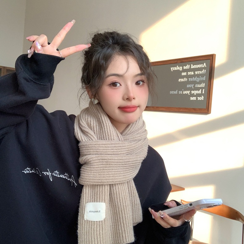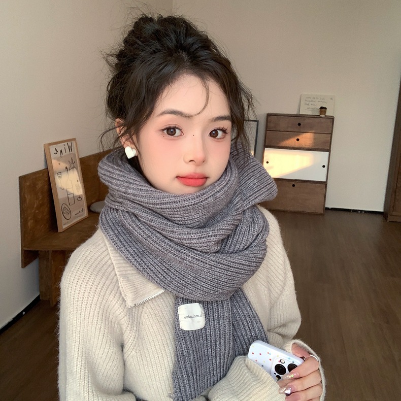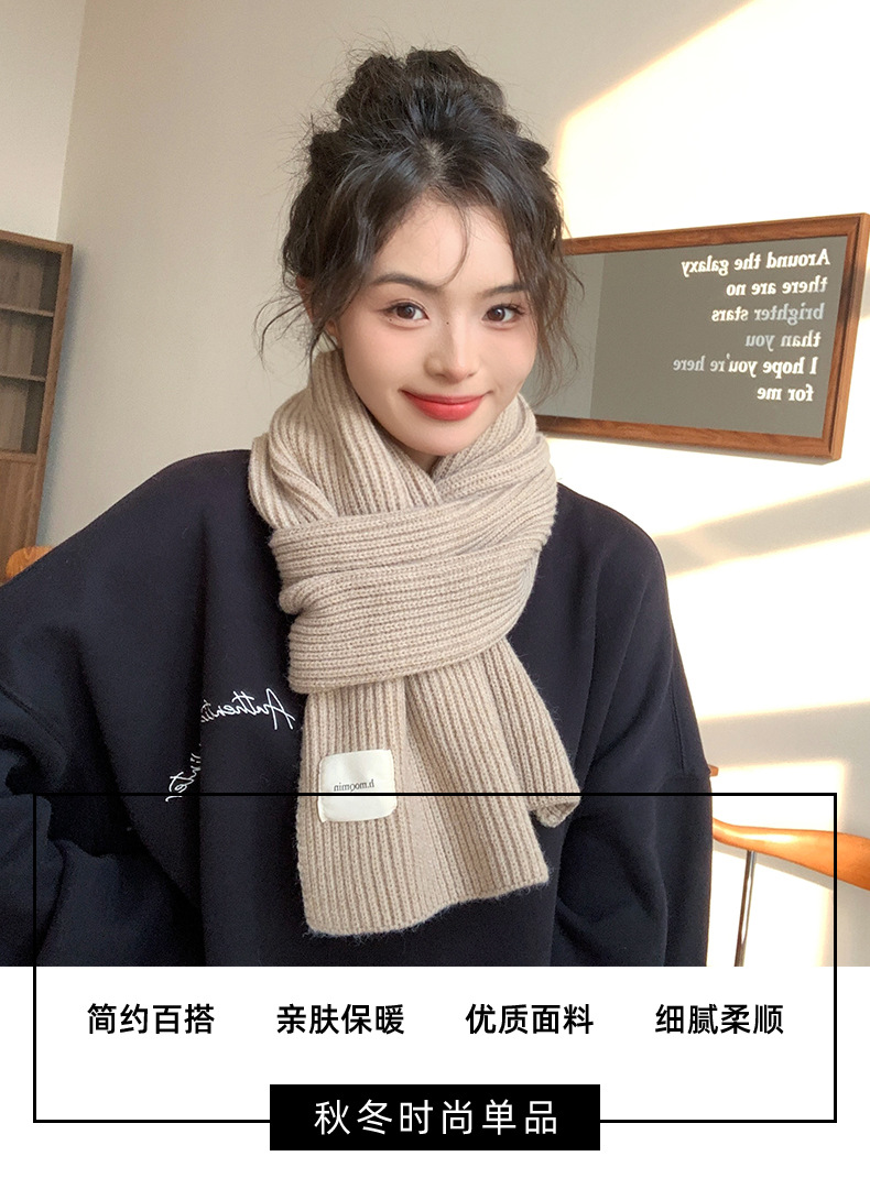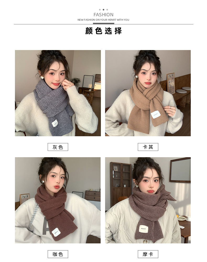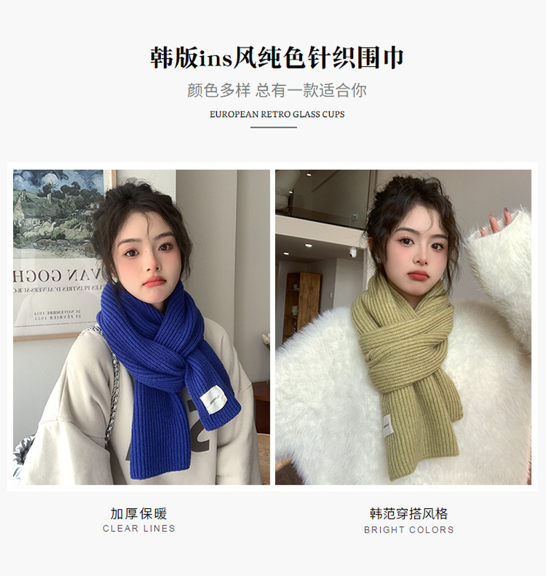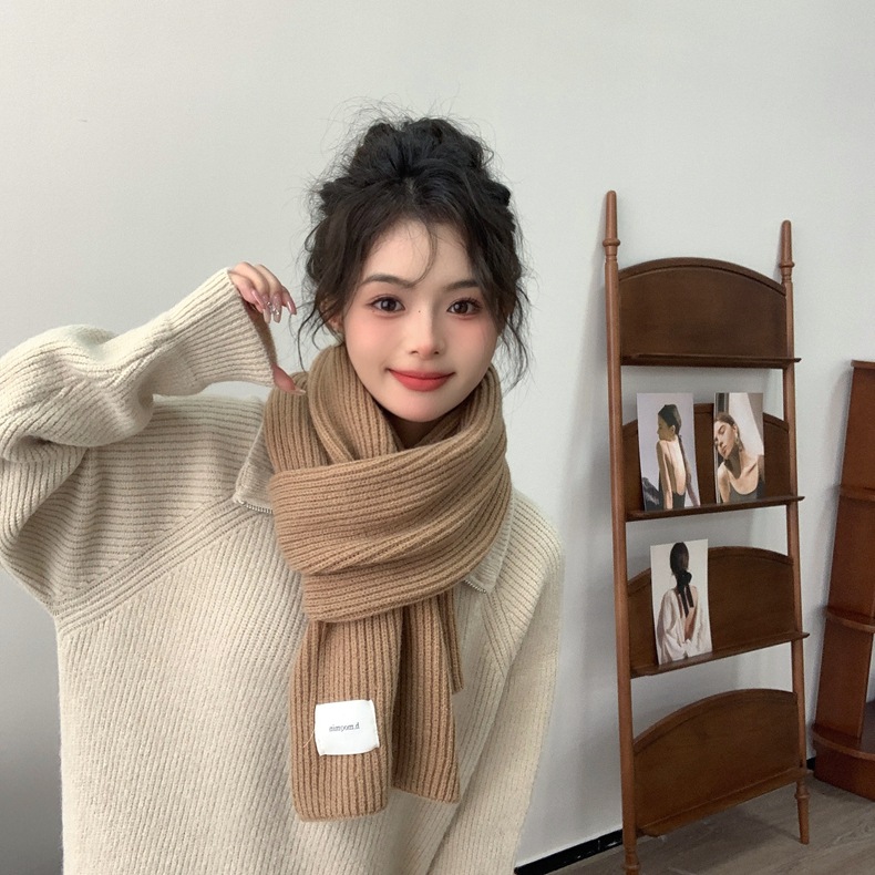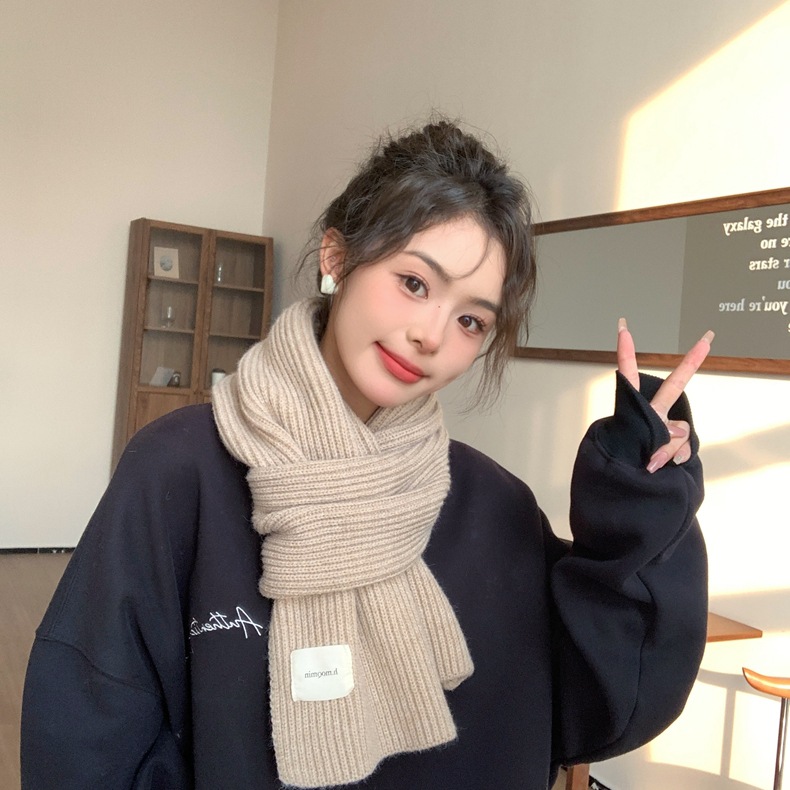 니트 울 스카프 여성 겨울 2023 새로운 고급 다목적 한국 단색 따뜻한 학업 스타일 짧은 스카프스토어 가기