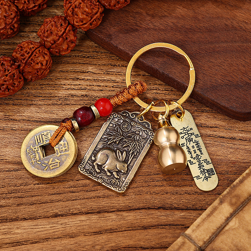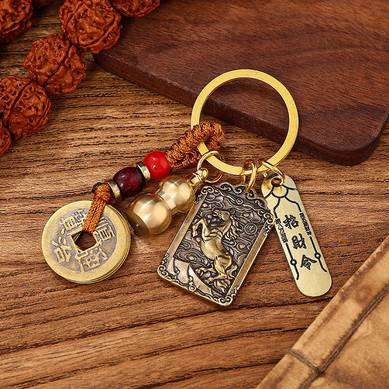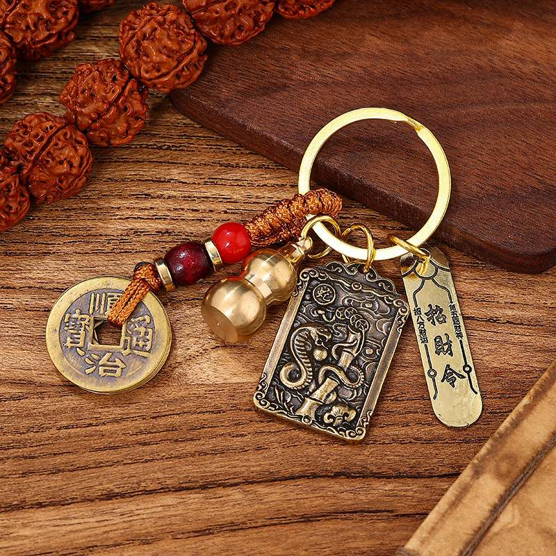 황동 조디악 자오 공 밍우 부의 신 키 체인 조롱박 다섯 황제 돈 행운의 주문 펜던트 세트 펜던트스토어 가기