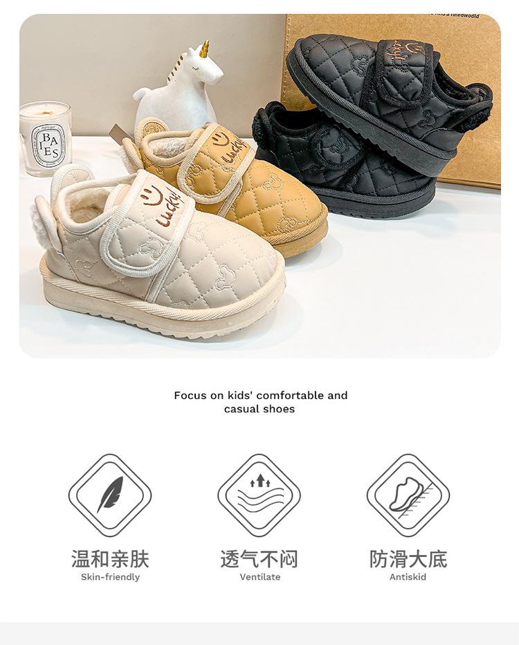 어린이 2023 겨울 새로운 유아 신발 소년 곰 귀 실내 신발 어린이 한국 스타일 부드러운 밑창 면화