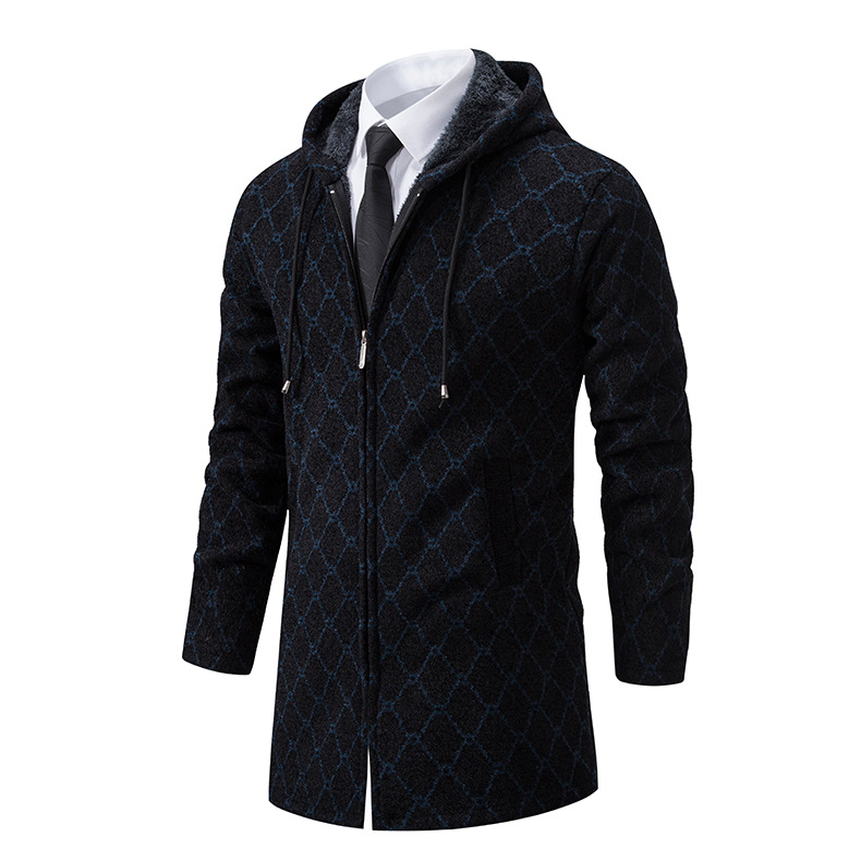 크로스 보더 가을과 겨울 남자의 긴 스웨터 패션 캐주얼 후드 스웨터 코트 트렌드 기모 카디건 스웨터
