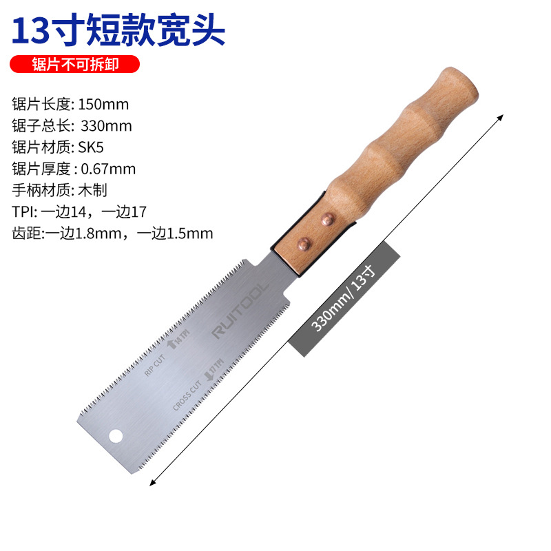 13寸宽头双面锯:151g  34.5*6.2*2.8cm