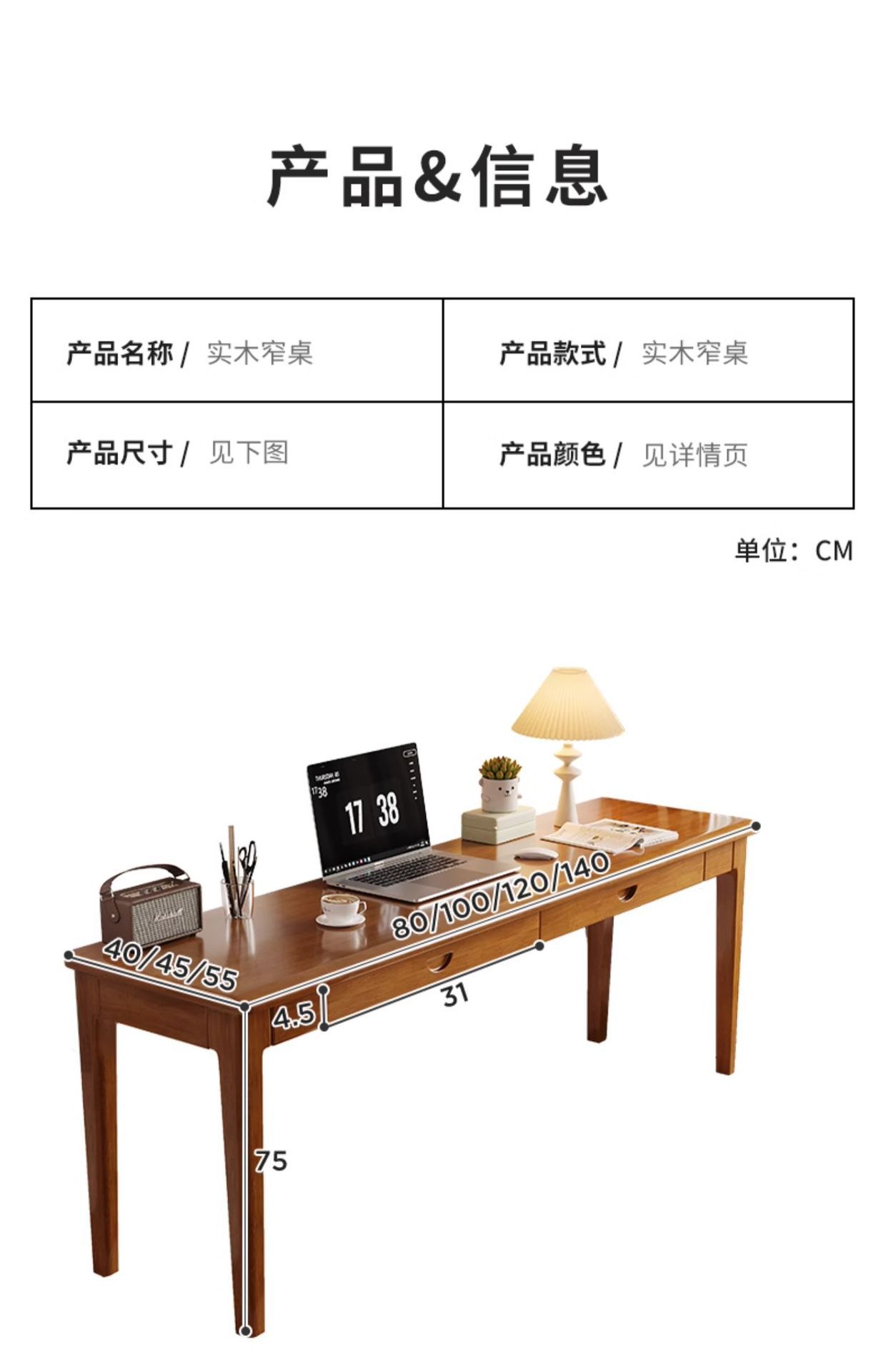 모든 단단한 나무 좁은 책상 40/45/55cm 와이드 가정용 컴퓨터 책상 벽 긴 테이블 학생 침실 연구 테이블