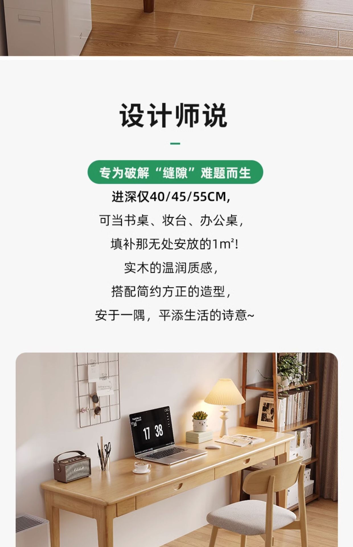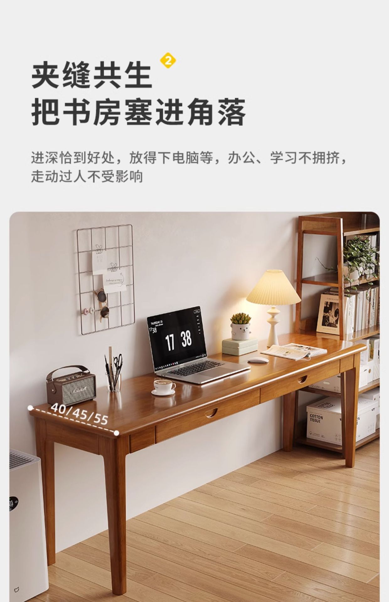 모든 단단한 나무 좁은 책상 40/45/55cm 와이드 가정용 컴퓨터 책상 벽 긴 테이블 학생 침실 연구 테이블스토어 가기