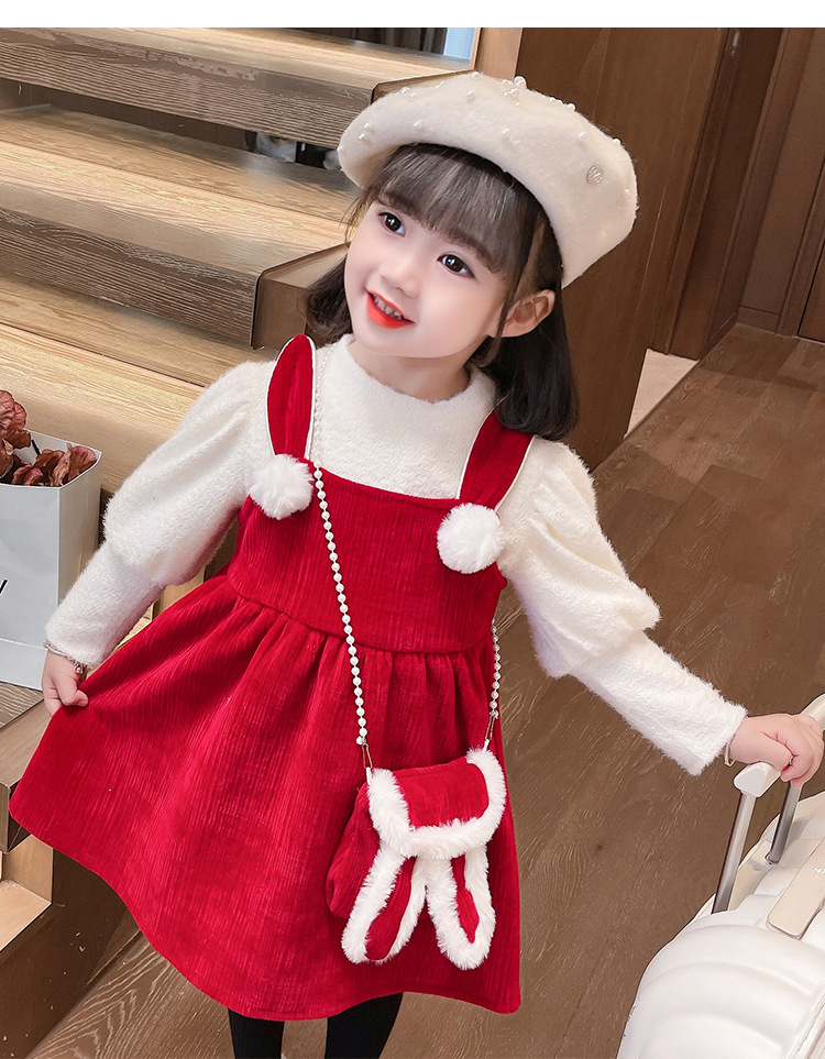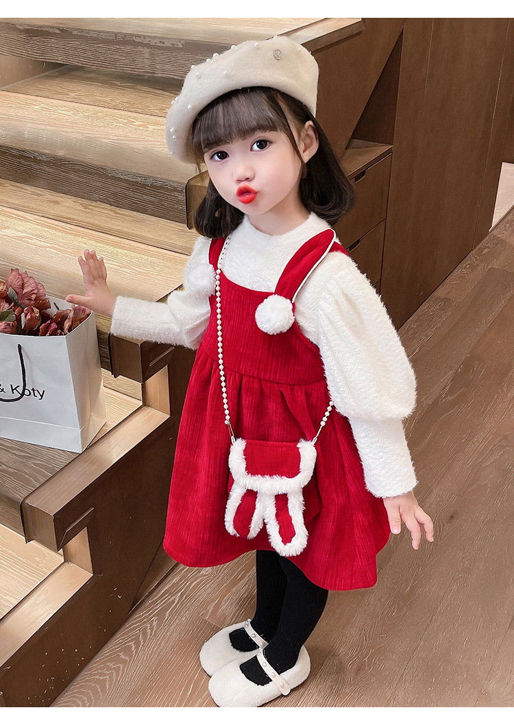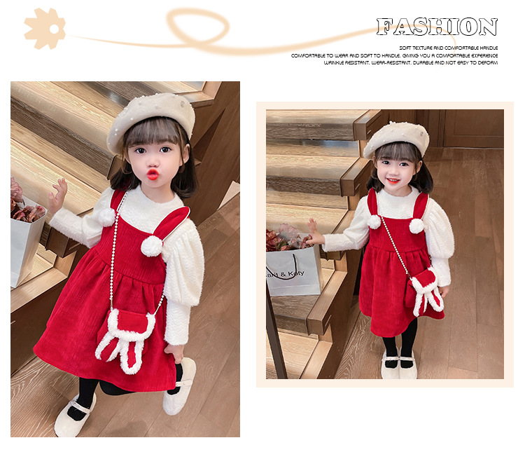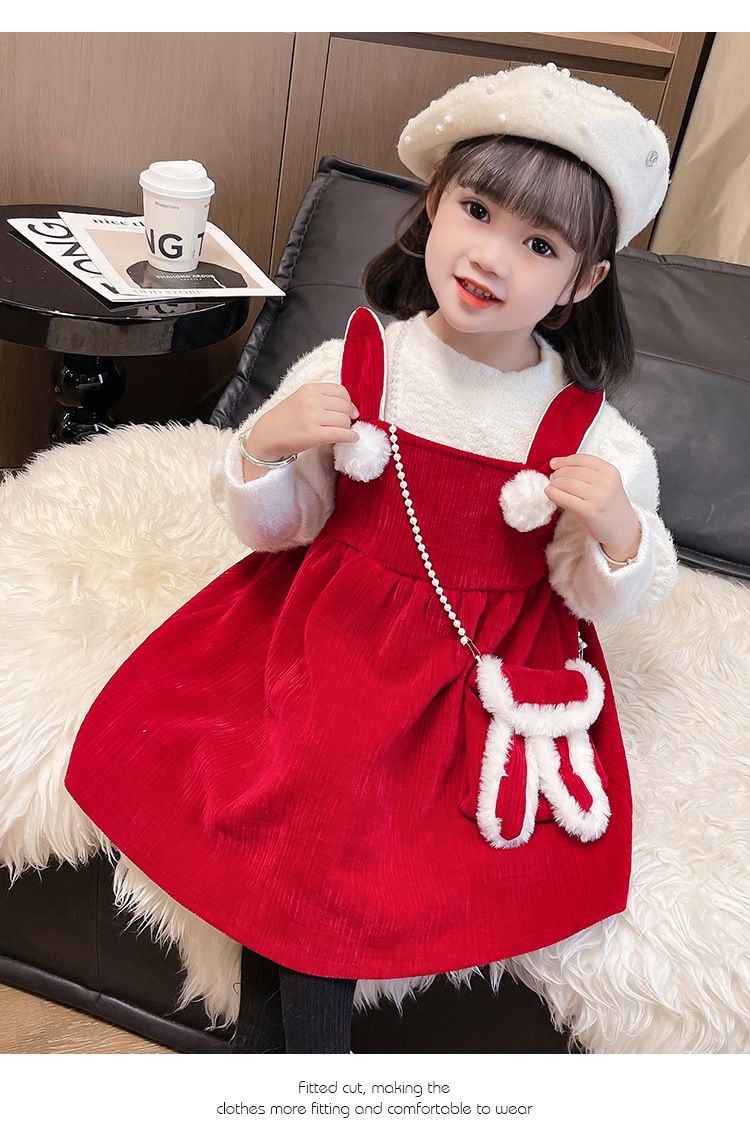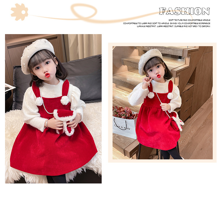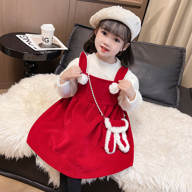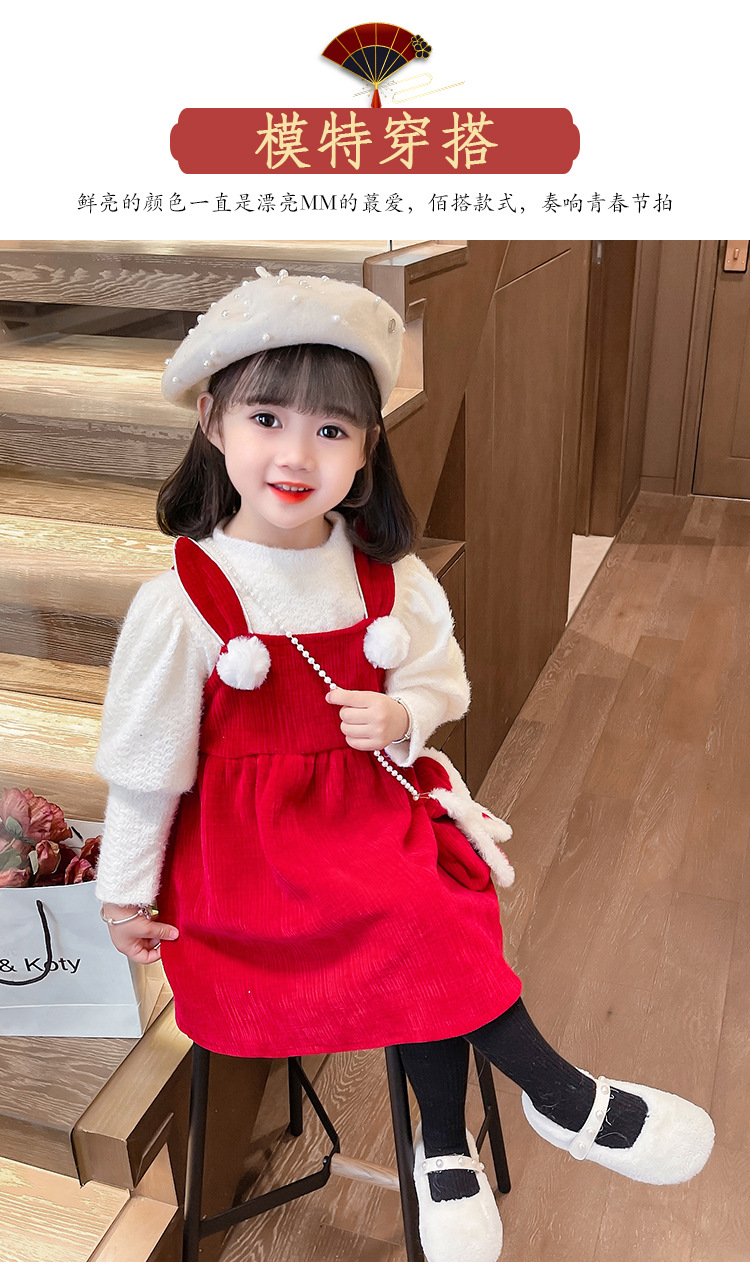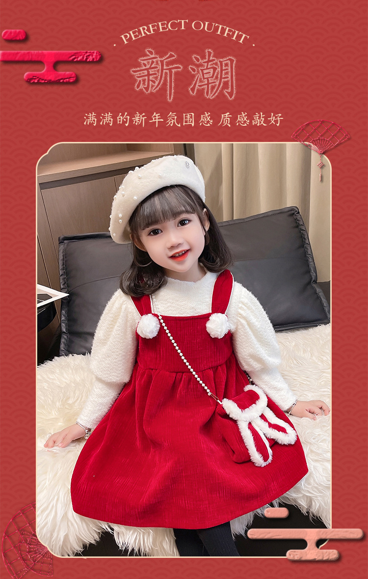 여자 겨울 세트 유행 서양 스타일 한국 팬 2022 새해 어린이 온라인 인기 기모 아기 소녀의 가을과 겨울 원피스