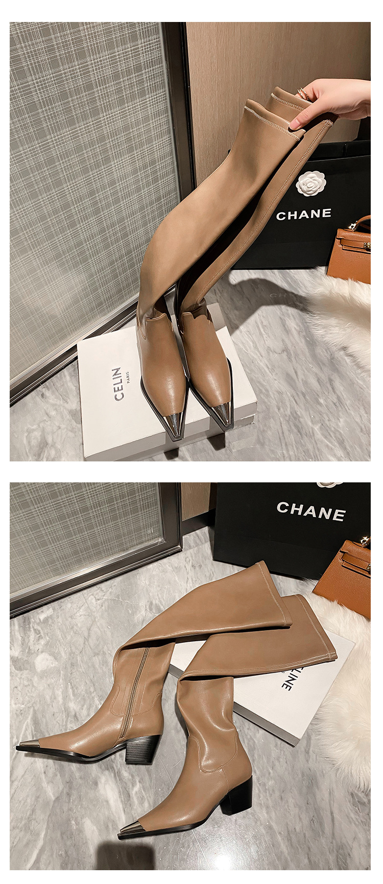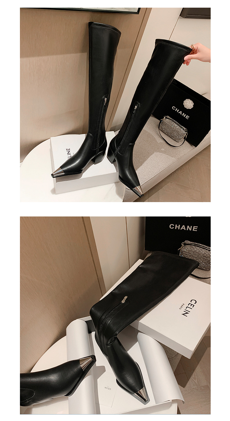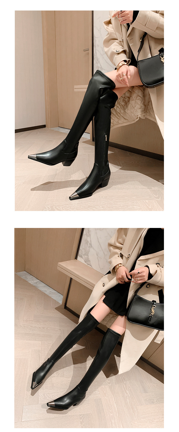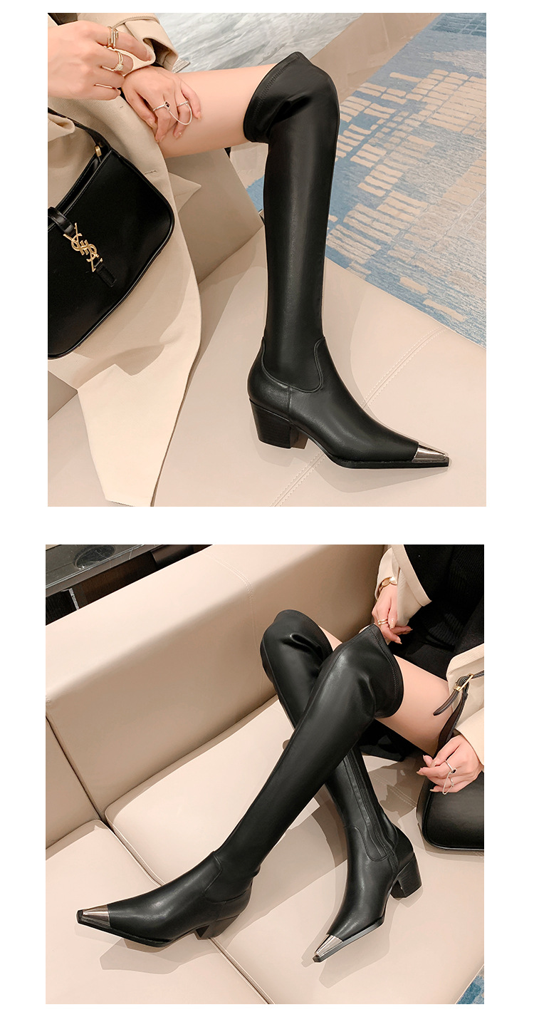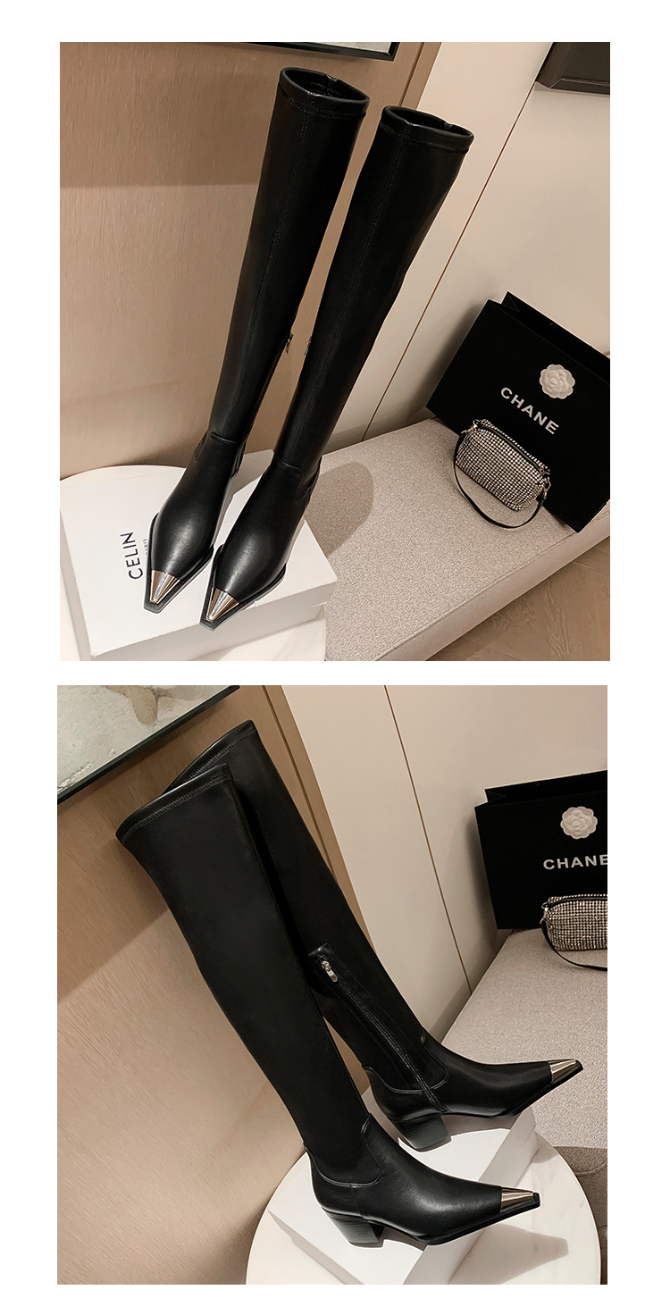 가을과 겨울 새로운 금속 뾰족한 스트레치 부츠 슬리밍 슈퍼 롱 오버 더 니 부츠 여성용 두꺼운 굽 5cm 작은 부츠스토어 가기