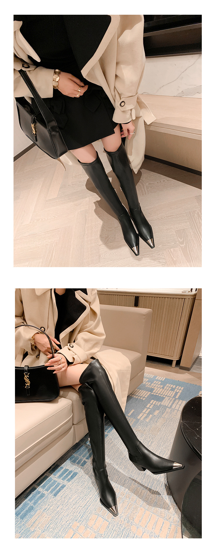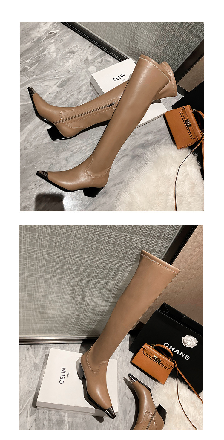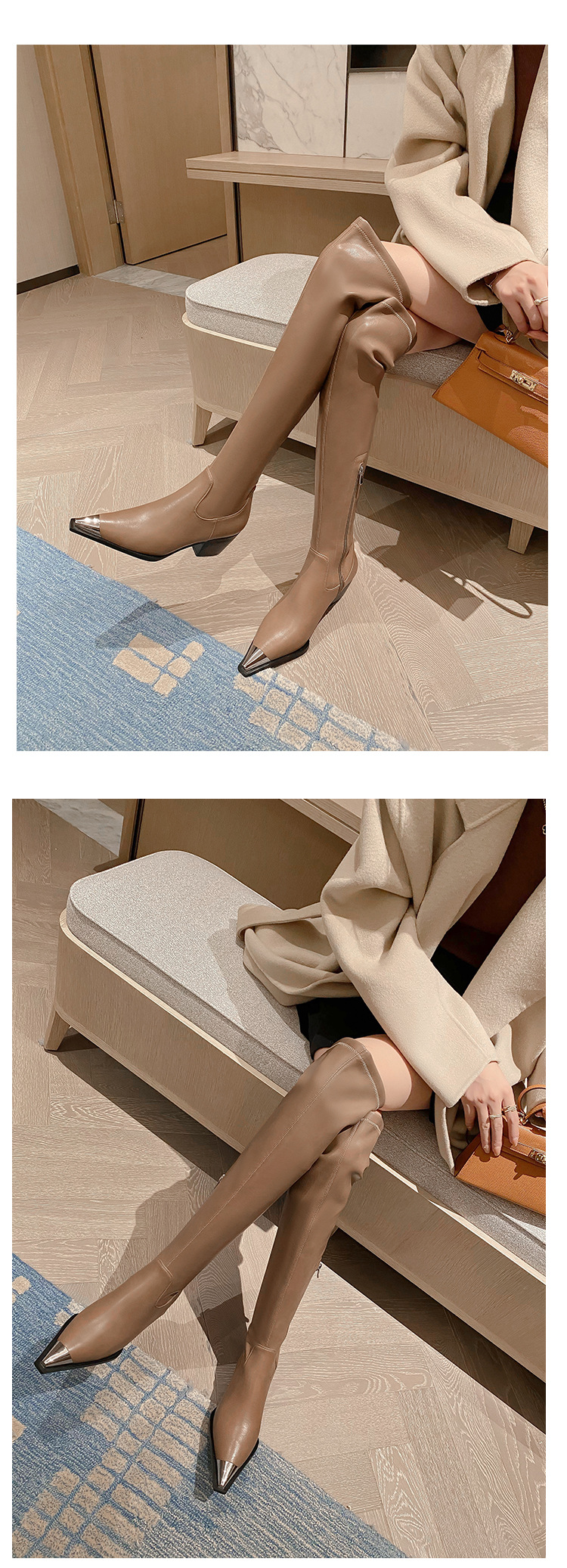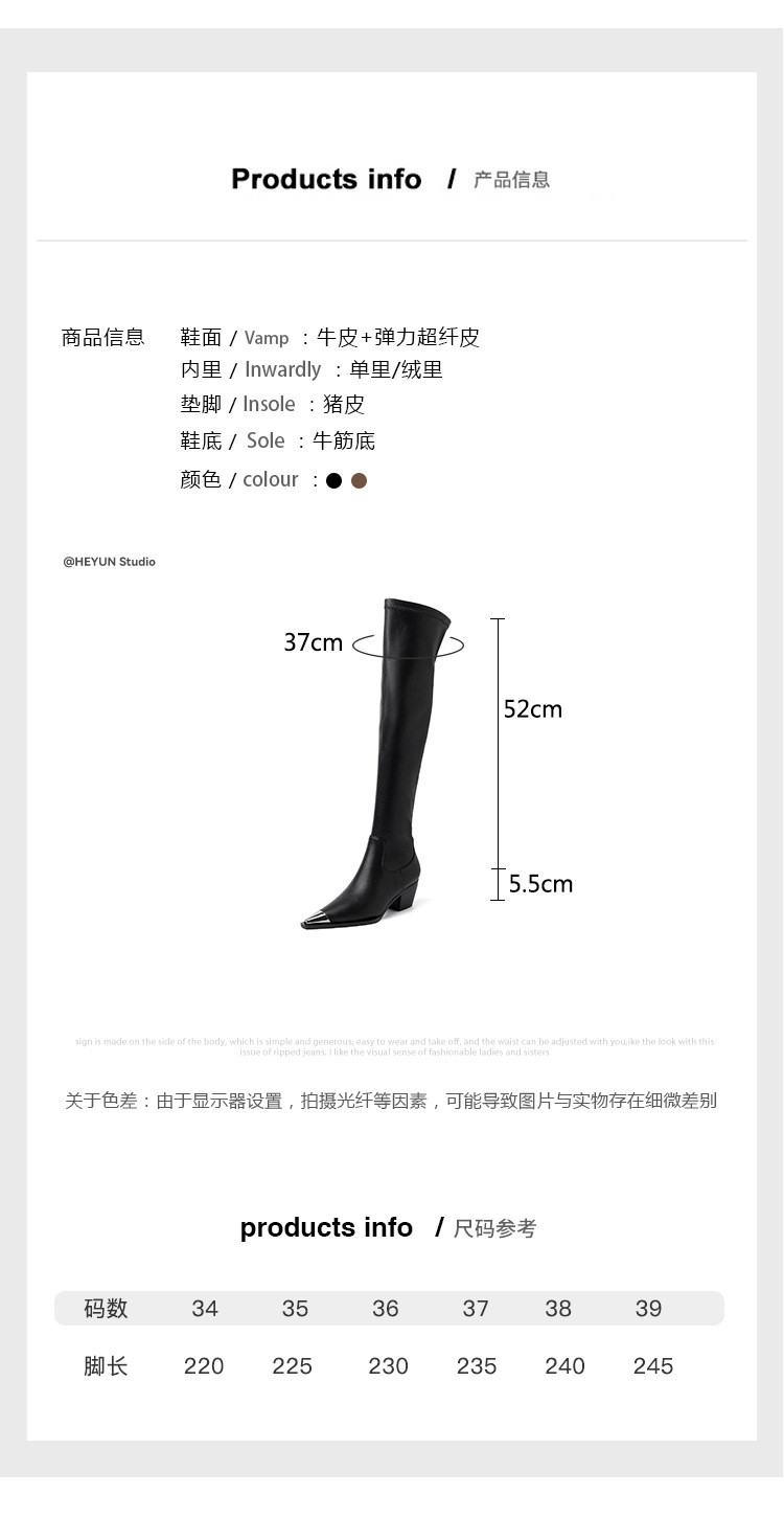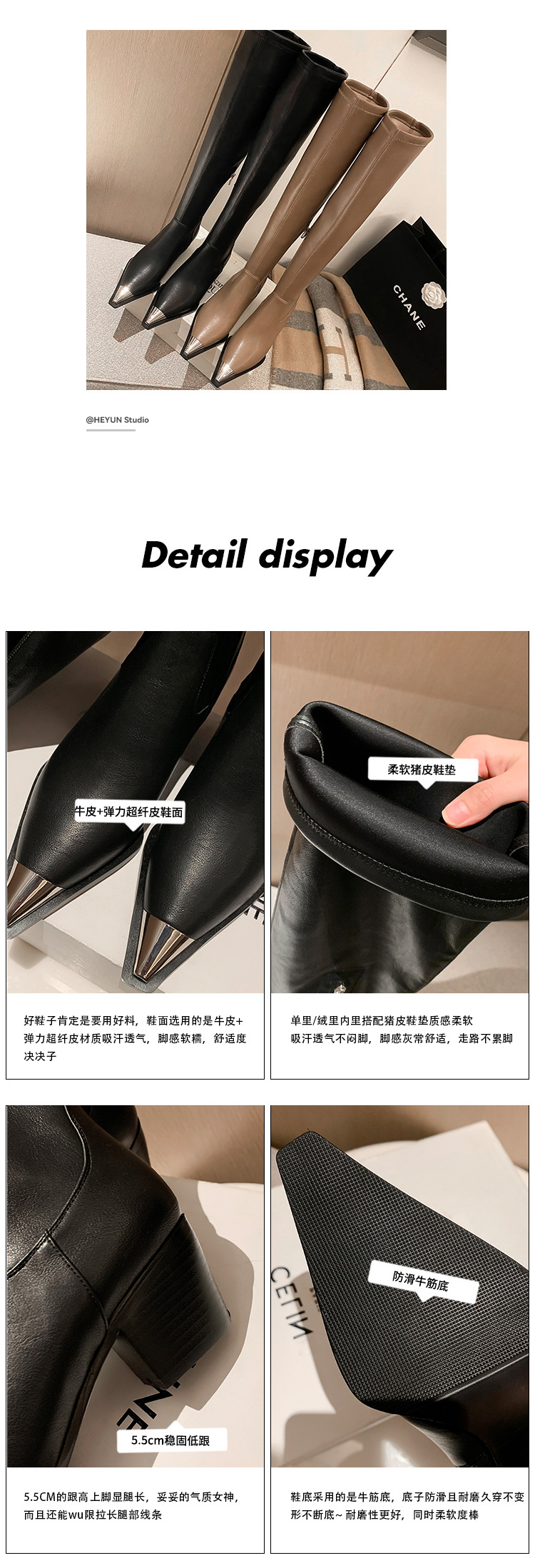 가을과 겨울 새로운 금속 뾰족한 스트레치 부츠 슬리밍 슈퍼 롱 오버 더 니 부츠 여성용 두꺼운 굽 5cm 작은 부츠스토어 가기