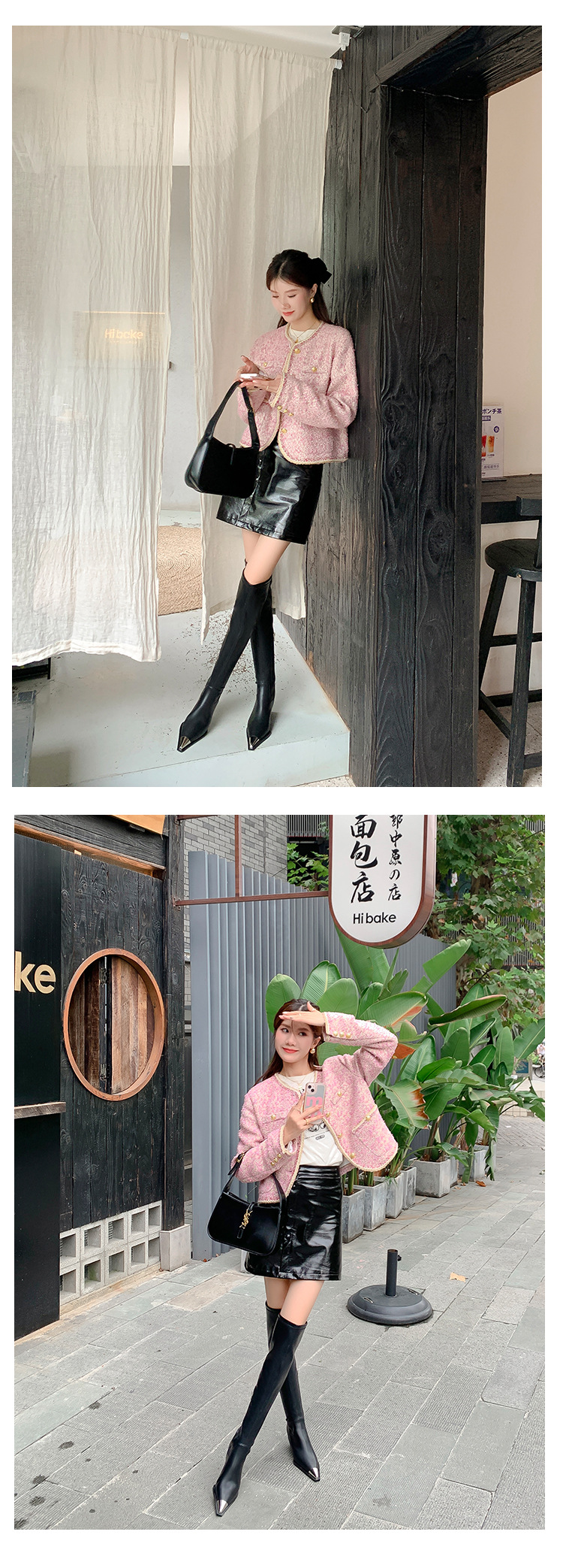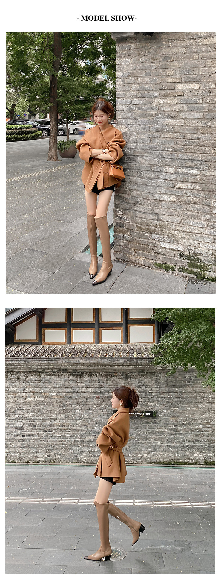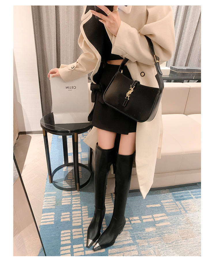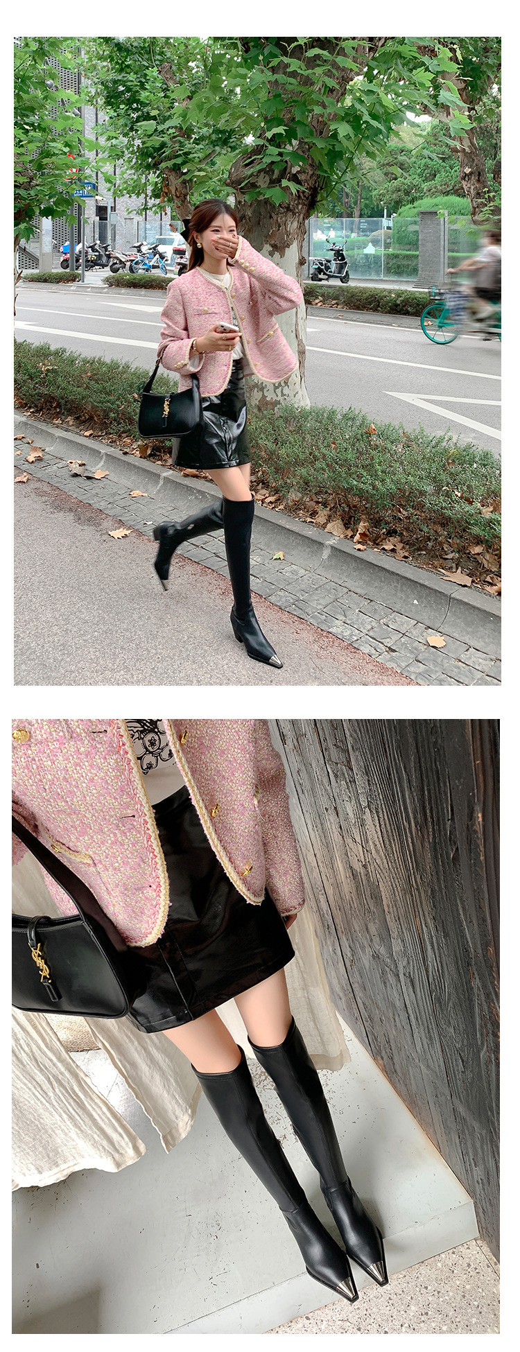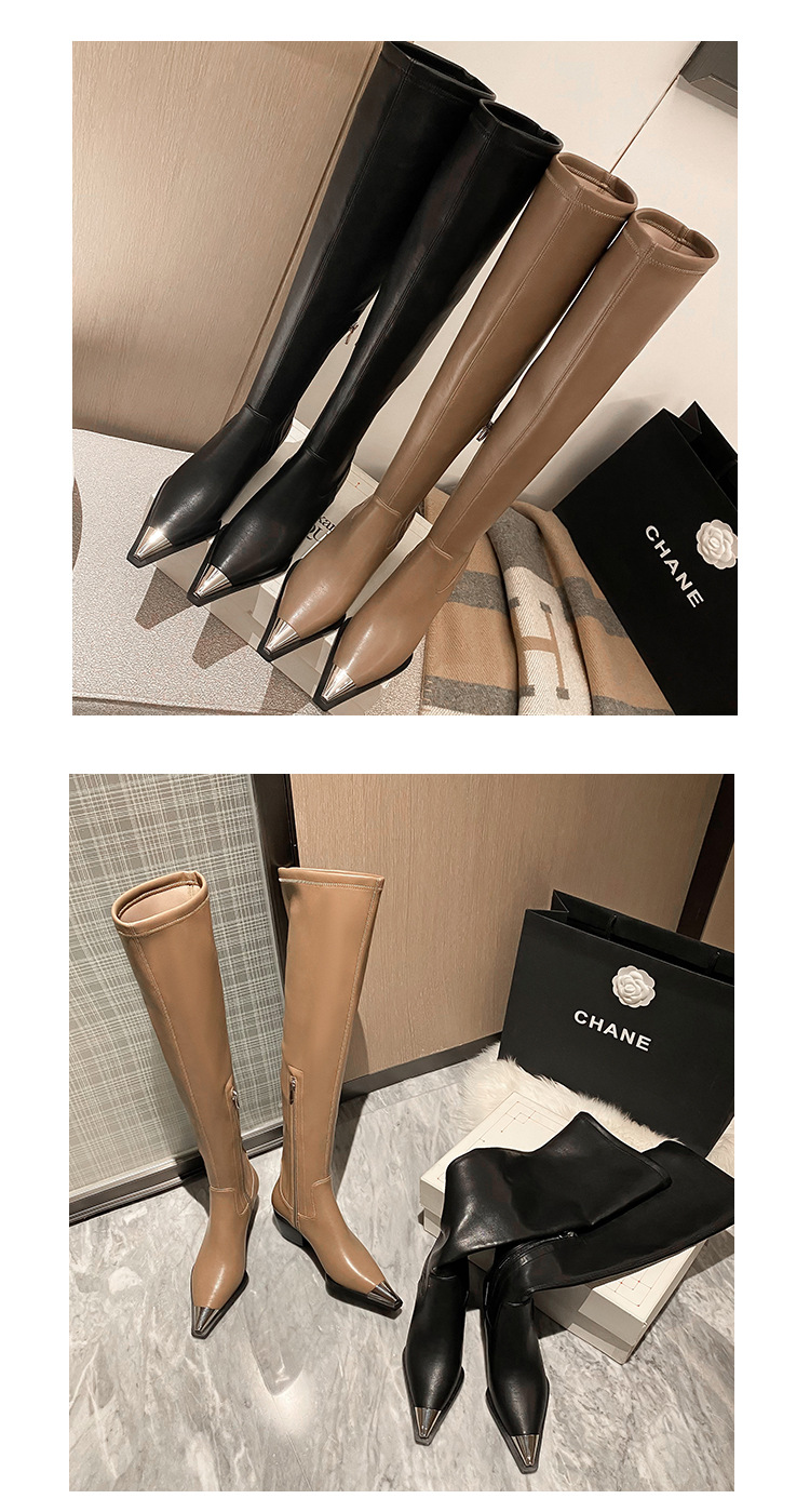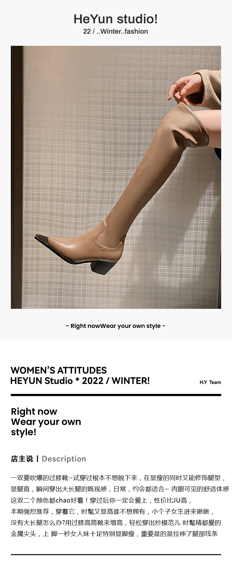 가을과 겨울 새로운 금속 뾰족한 스트레치 부츠 슬리밍 슈퍼 롱 오버 더 니 부츠 여성용 두꺼운 굽 5cm 작은 부츠스토어 가기