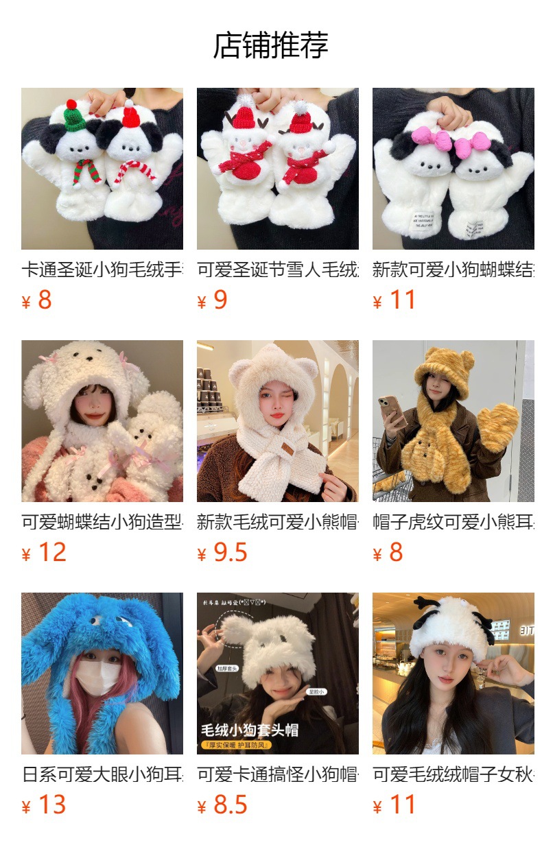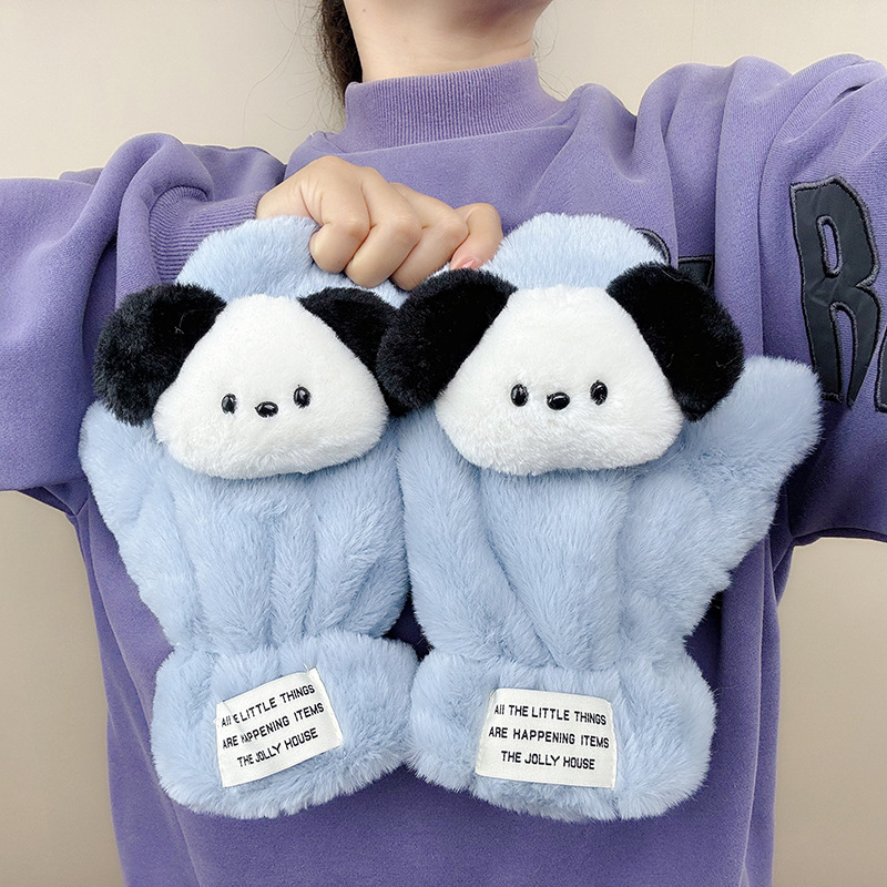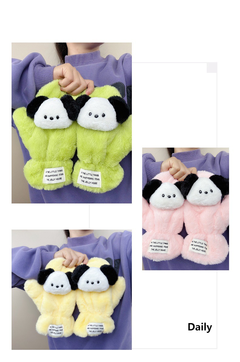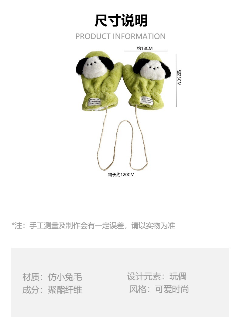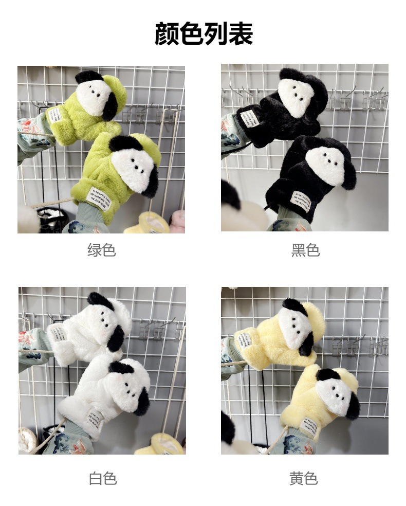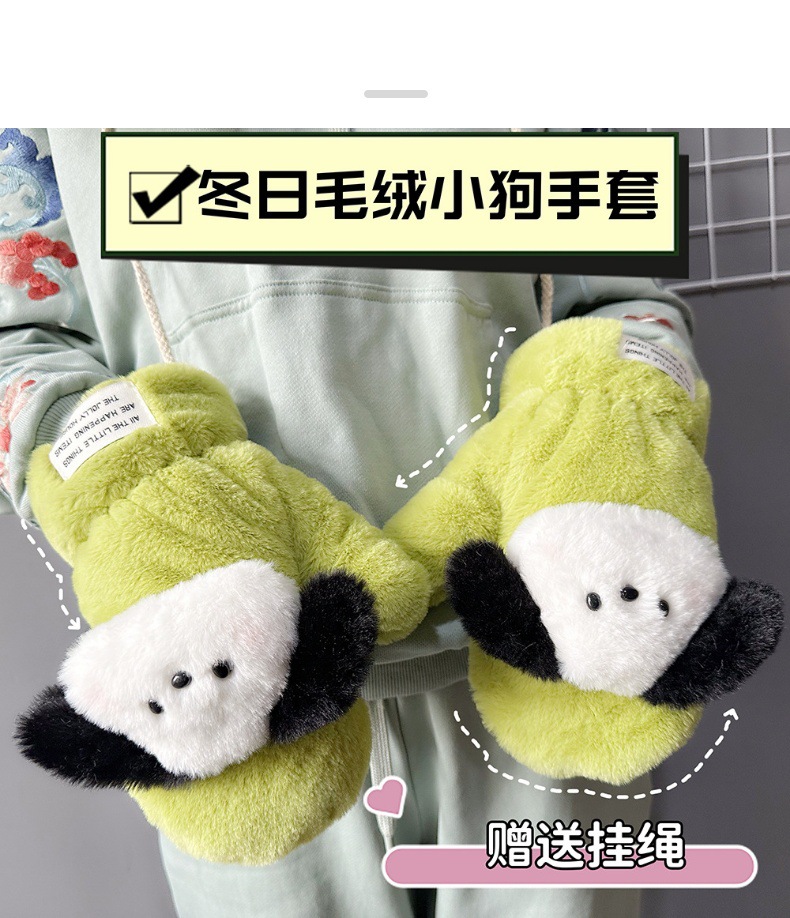 귀여운 봉제 강아지 장갑 소녀 겨울 승마 학생을위한 방한 작은 유물 따뜻한 장갑 소녀는 목을 걸 수 있습니다