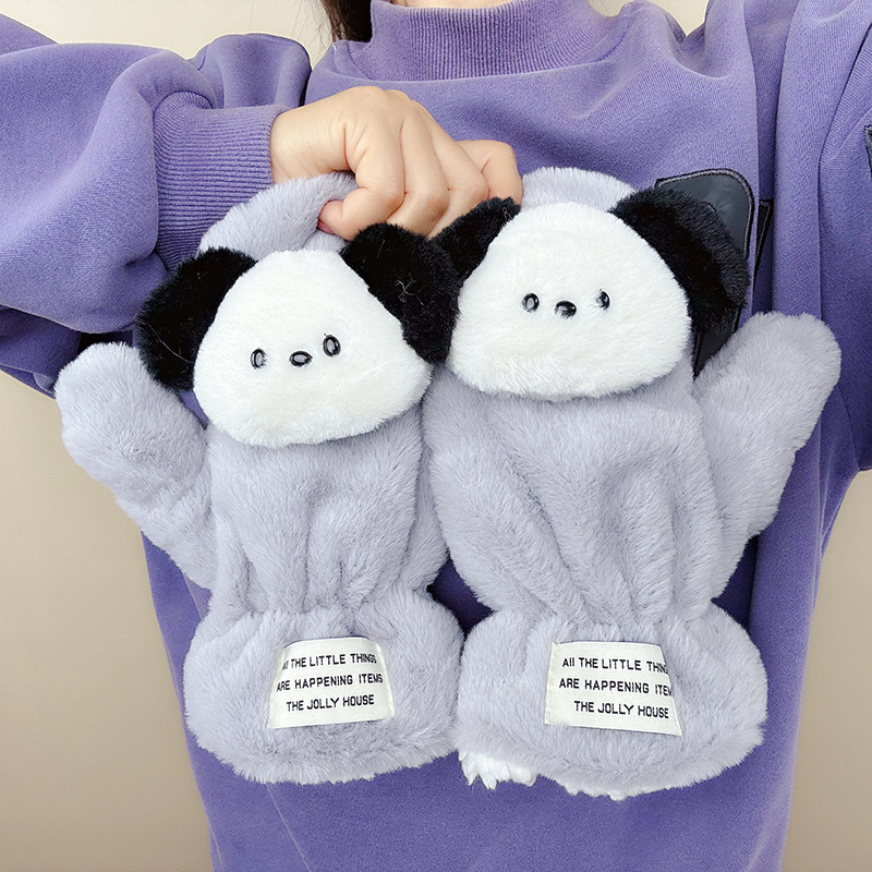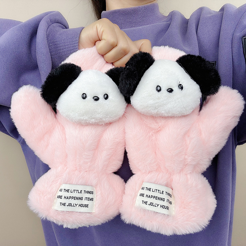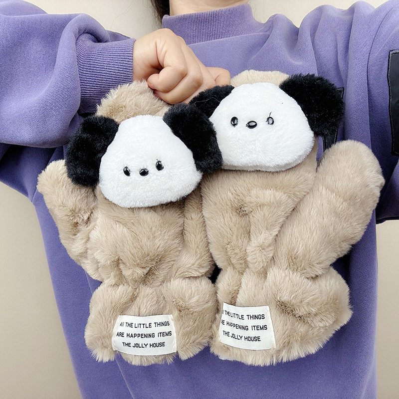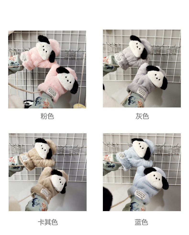 귀여운 봉제 강아지 장갑 소녀 겨울 승마 학생을위한 방한 작은 유물 따뜻한 장갑 소녀는 목을 걸 수 있습니다스토어 가기
