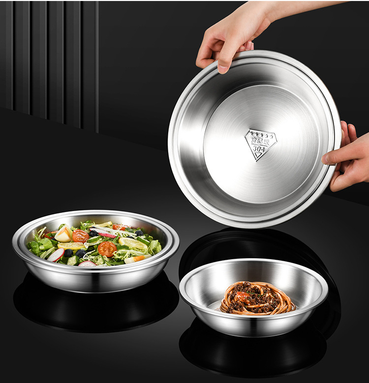 304 스테인리스 원형 접시, 국그릇, 밥그릇, 수프 그릇, 식사 접시, 두꺼운 접시, 뚜껑이 있는 접시, 음식 접시, 가정용스토어 가기