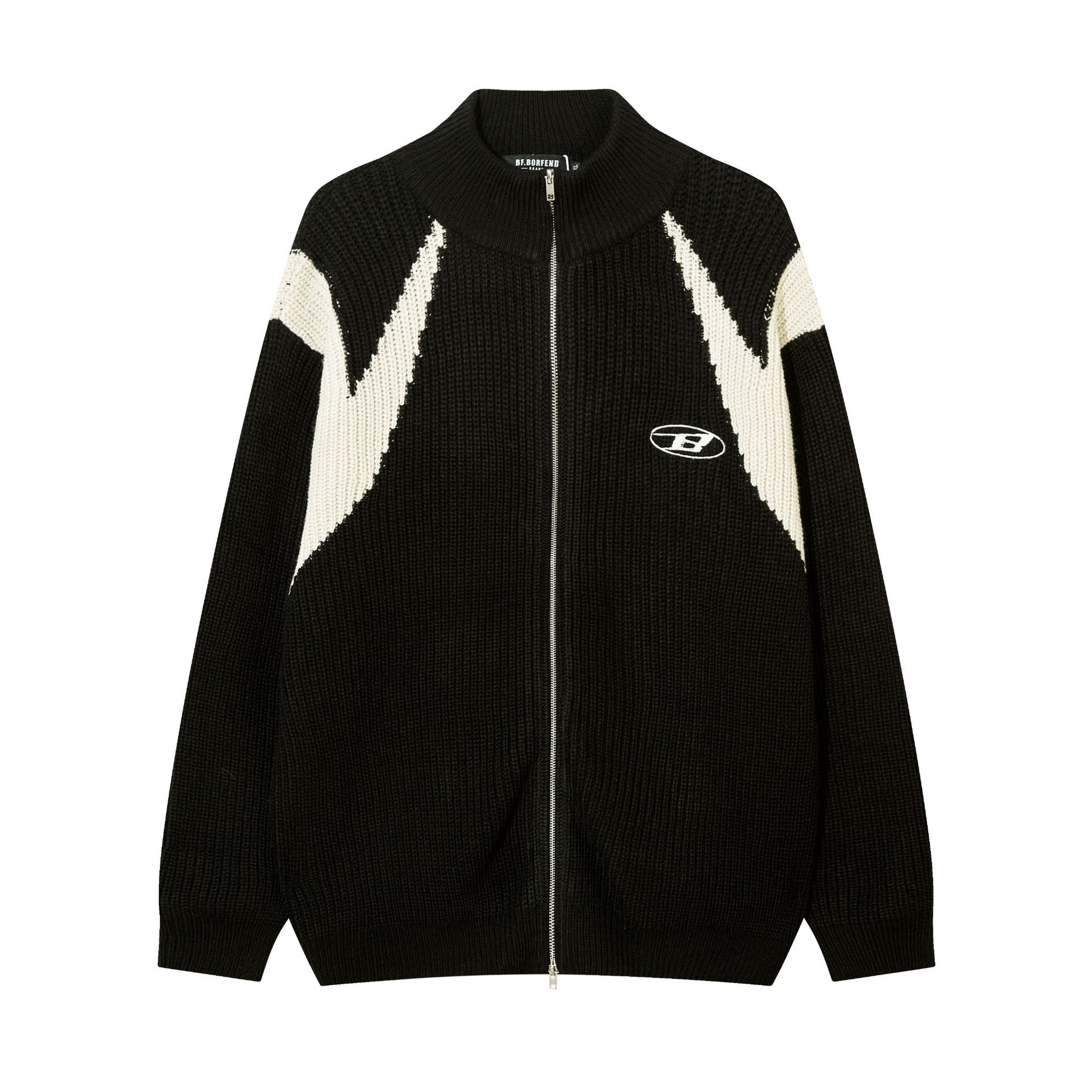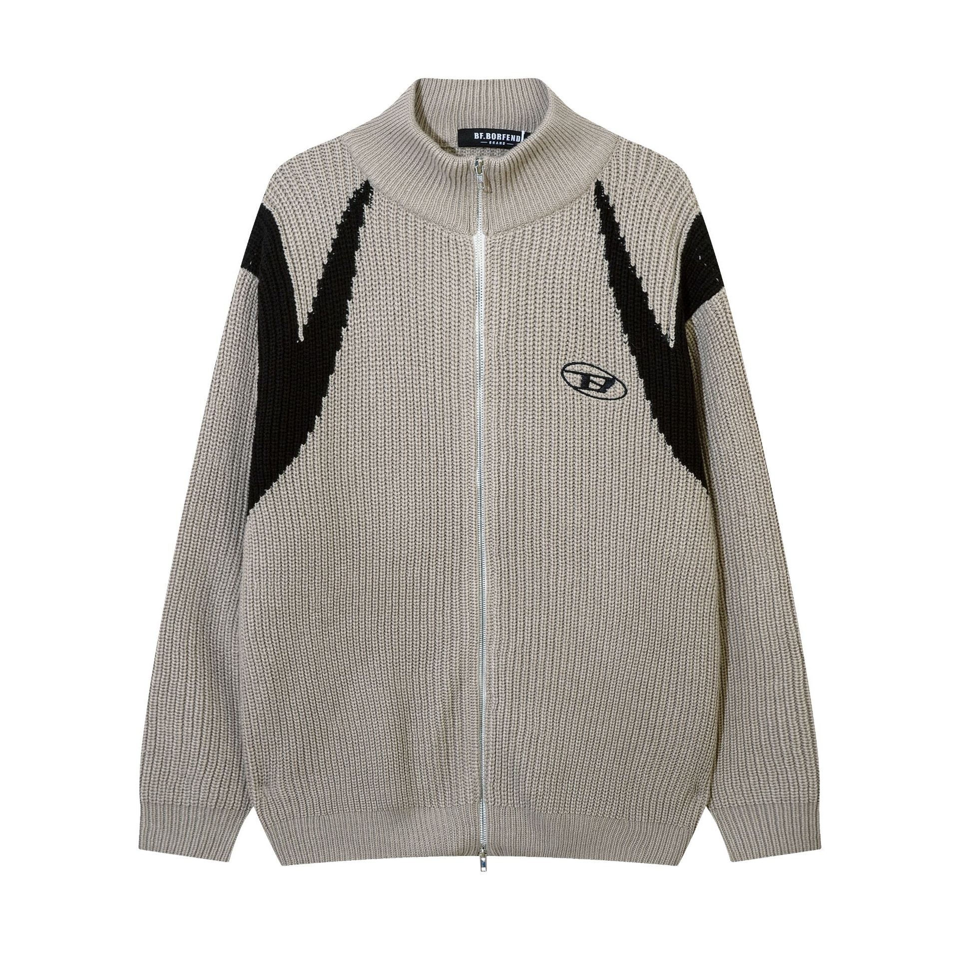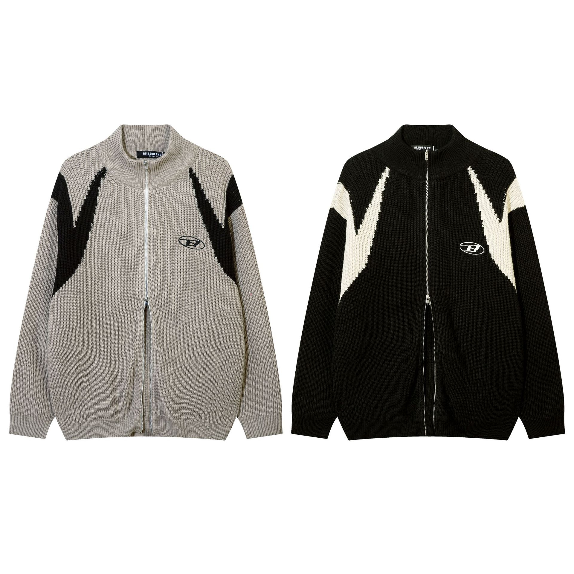 Jiayiku 남성복∣미국 레트로 스타일 니트 재킷 지퍼 카디건 스웨터 남성용 하이넥 두꺼운 배색 스웨터