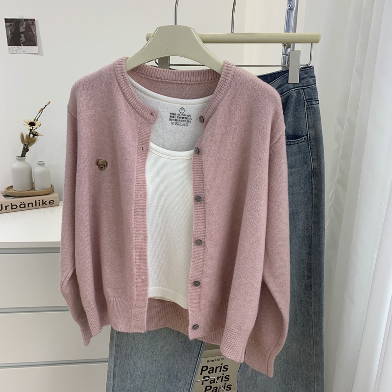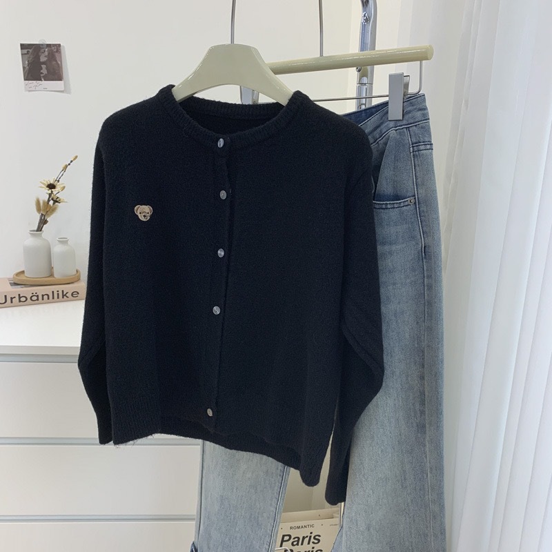 자수 곰 2023 가을과 겨울 새로운 패션 라운드 넥 컬러 버클 캐시미어 소프트 왁스 솔리드 컬러 캐주얼 니트 가디건스토어 가기