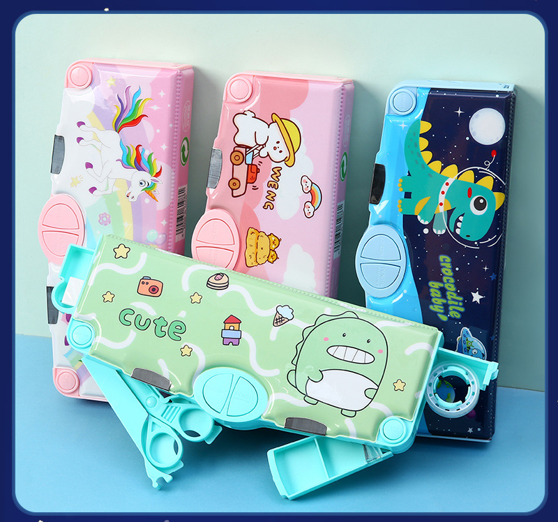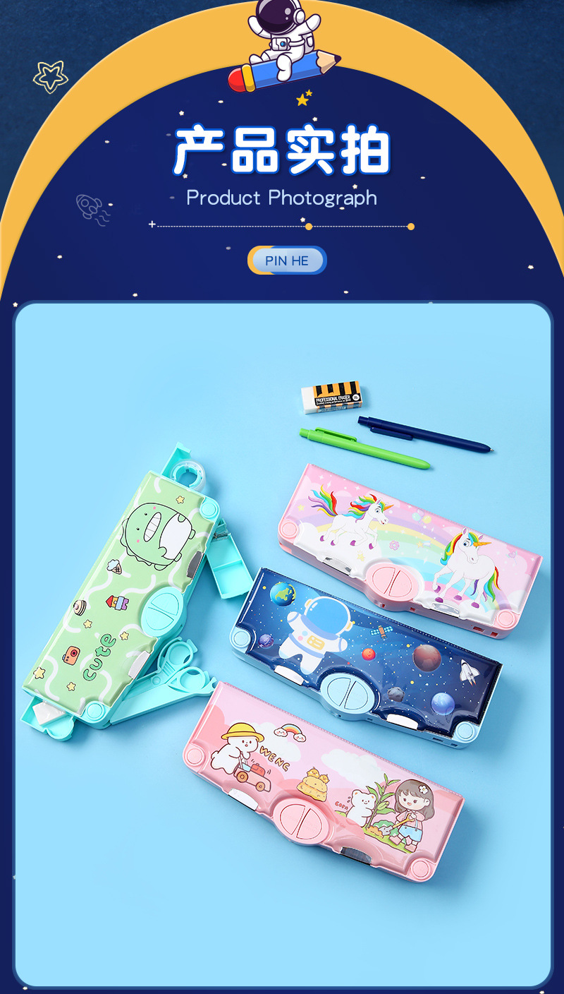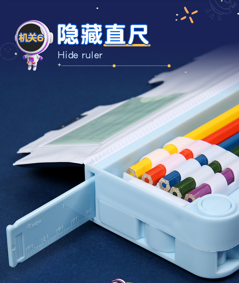 국경 간 창조적 인 우주 비행사 변형 다기능 연필 상자 빛나는 초등 학생 연필 상자 고가 문구 상자 도매