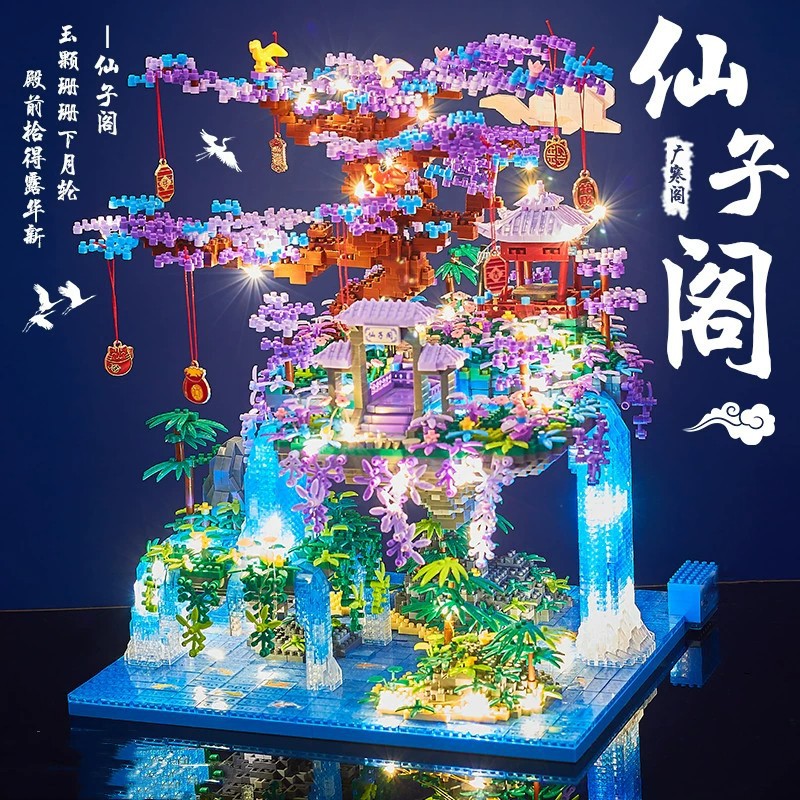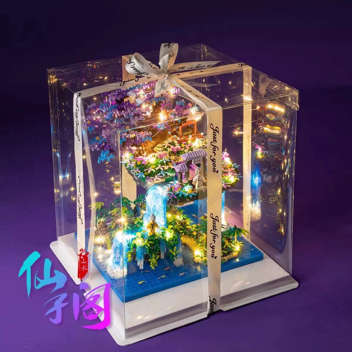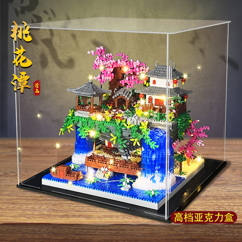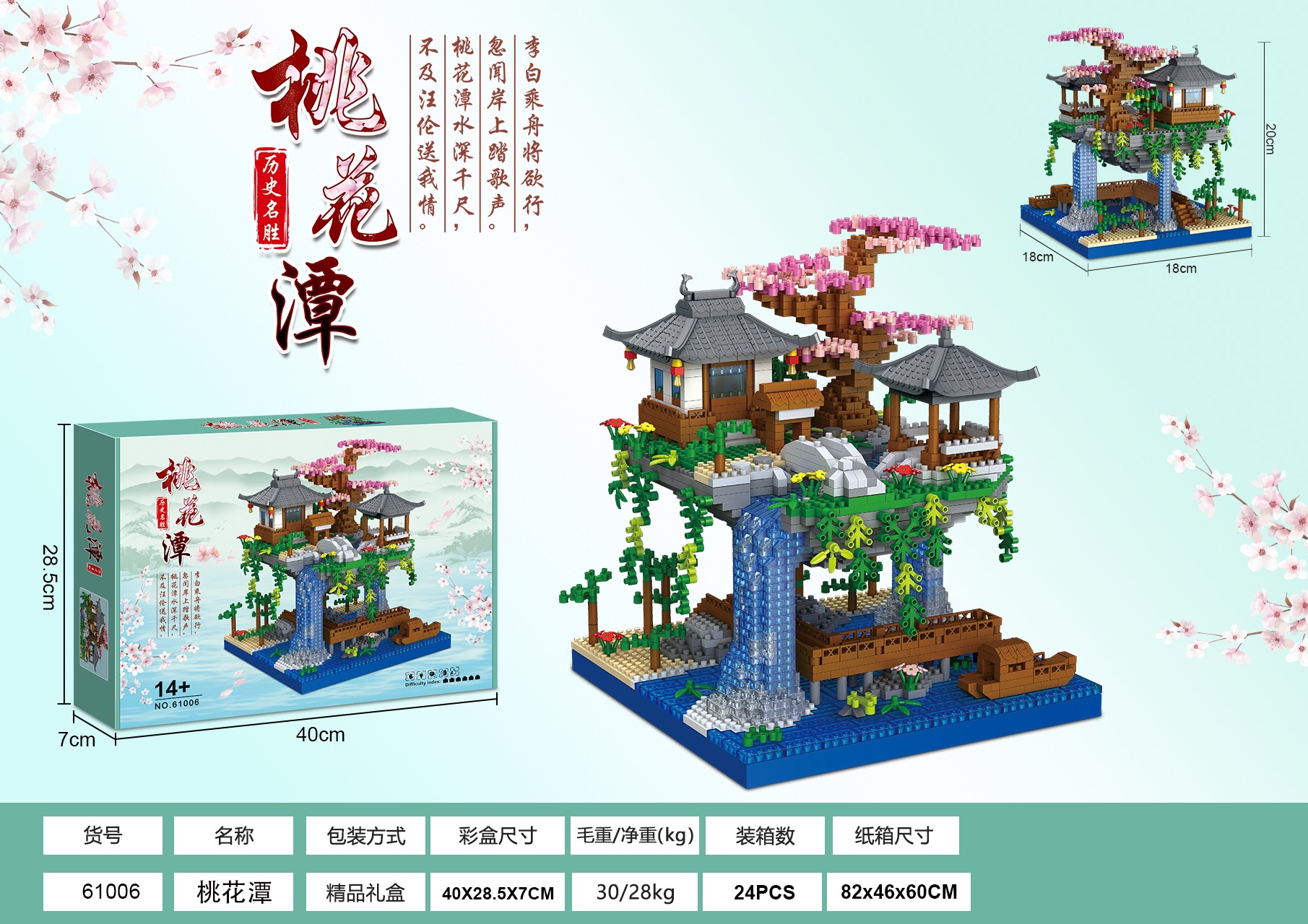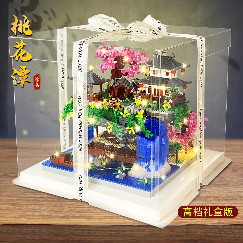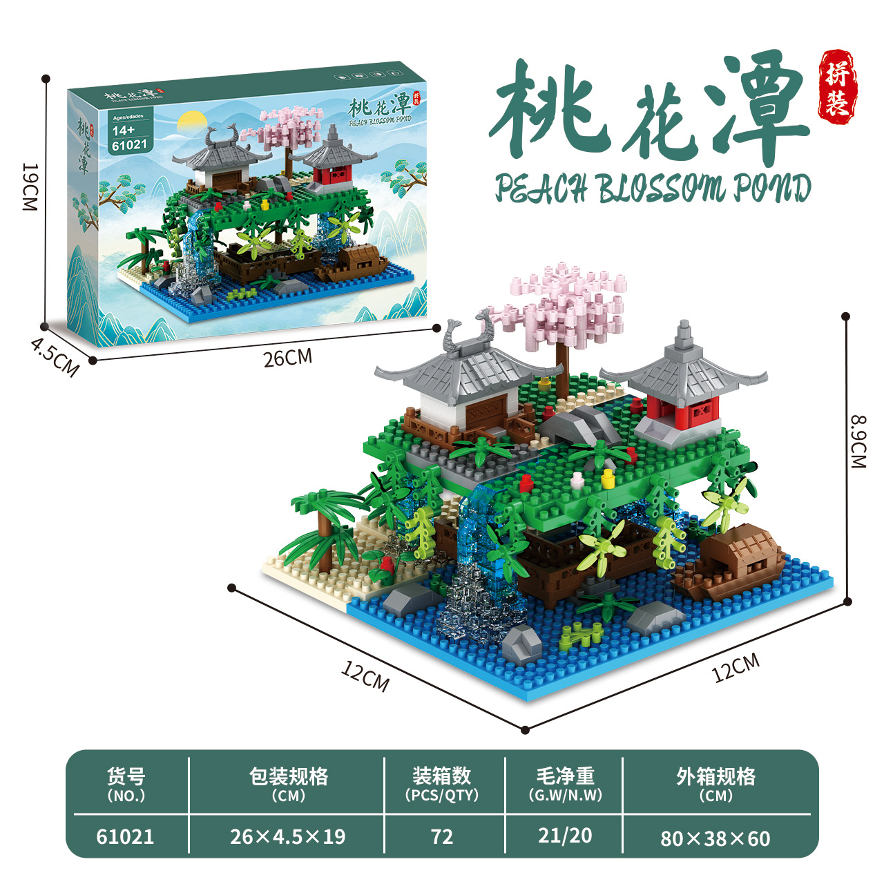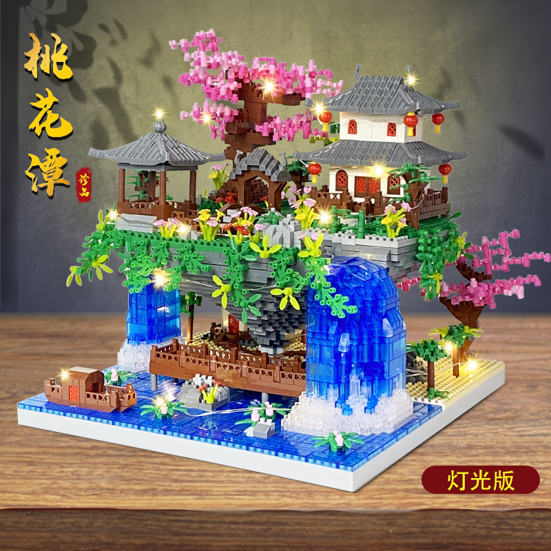 레고 작은 입자 블록과 호환 복숭아 꽃 수영장 중국 스타일 고대 건물 모델 어린이 교육 조립 장난감스토어 가기