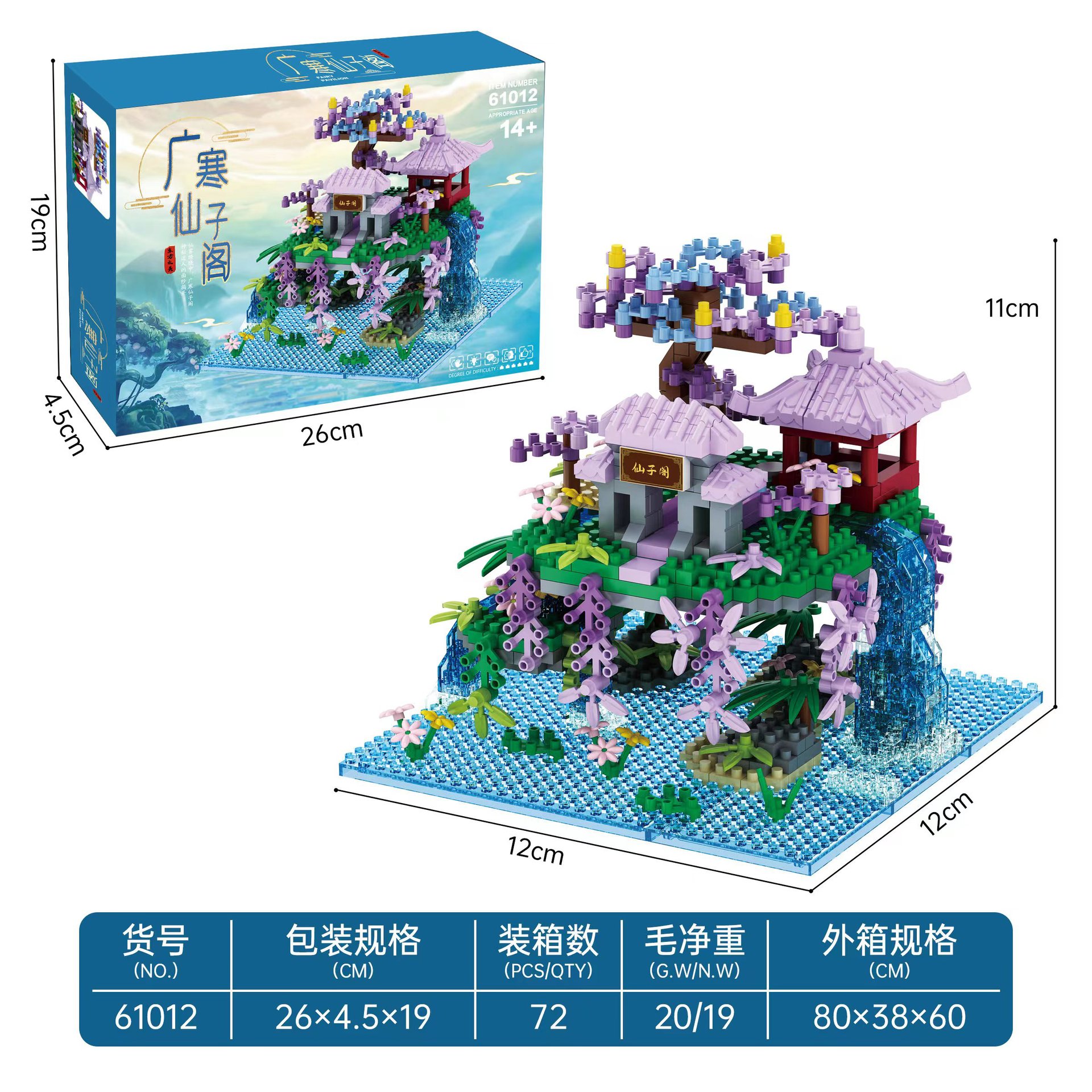 레고 작은 입자 블록과 호환 복숭아 꽃 수영장 중국 스타일 고대 건물 모델 어린이 교육 조립 장난감