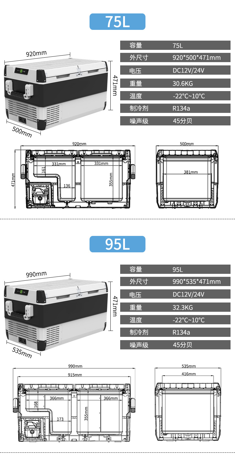 휴대용 자동차 냉장고 15~100리터 12V24볼트 압축기 냉동 자동차 냉장고 국경 간스토어 가기