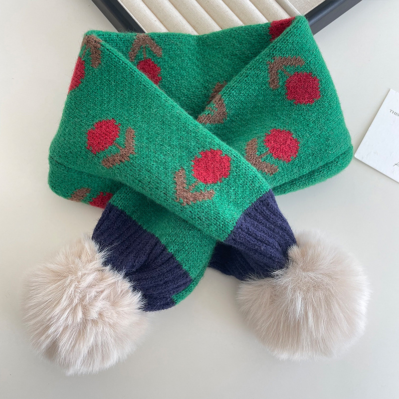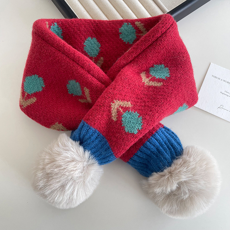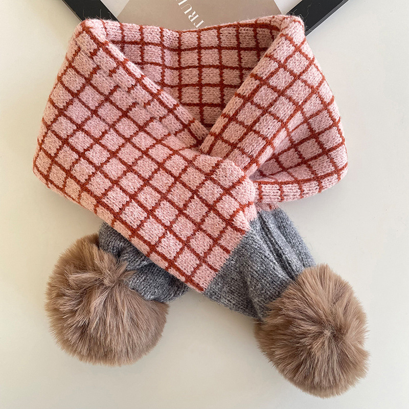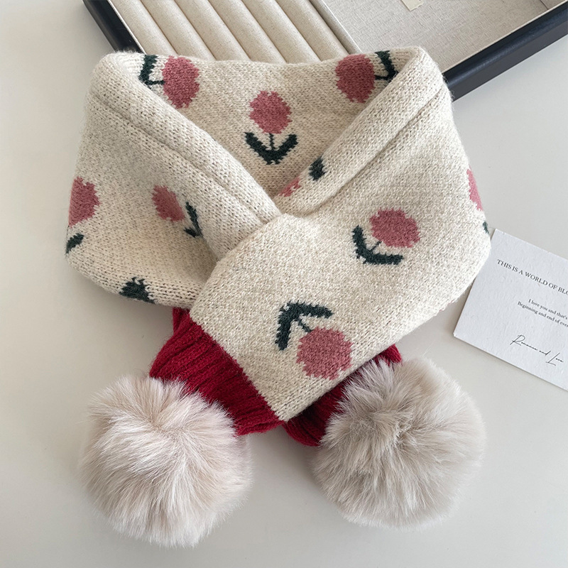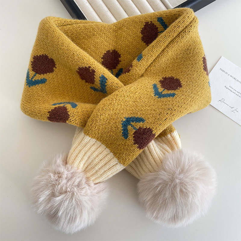 가을과 겨울 아기 모피 십자가 귀여운 따뜻한 스카프 한국 사각형 꽃 두꺼운 어린이 방풍 목 스카프
