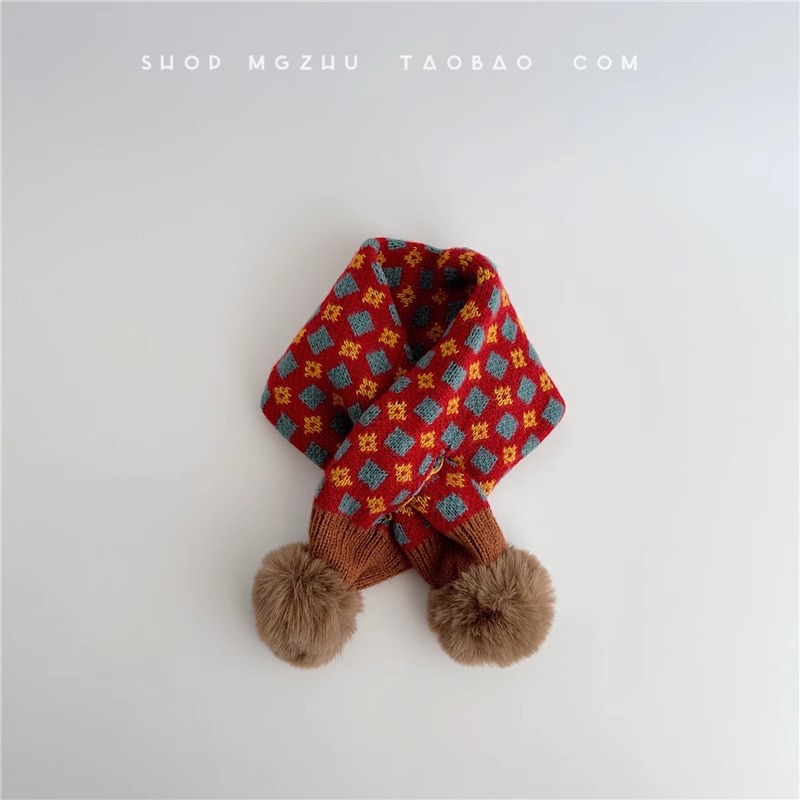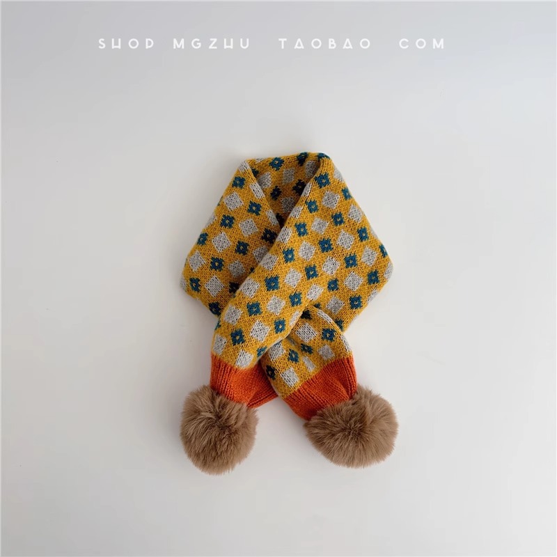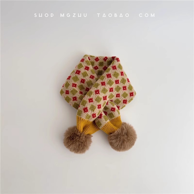가을과 겨울 아기 모피 십자가 귀여운 따뜻한 스카프 한국 사각형 꽃 두꺼운 어린이 방풍 목 스카프스토어 가기