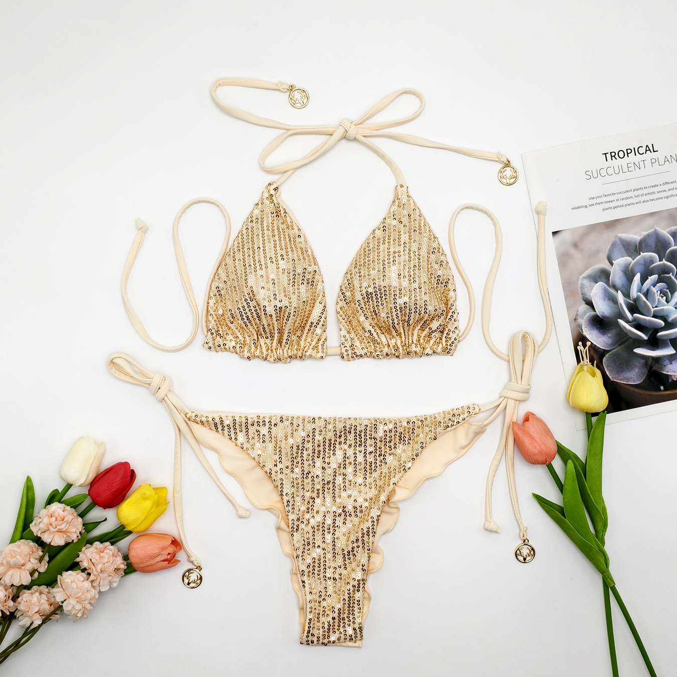 2024 새로운 도착 Sequin Bikini 여성 Triangle Cross Border 수영복 다색 비키니 수영복 재고 비키니스토어 가기