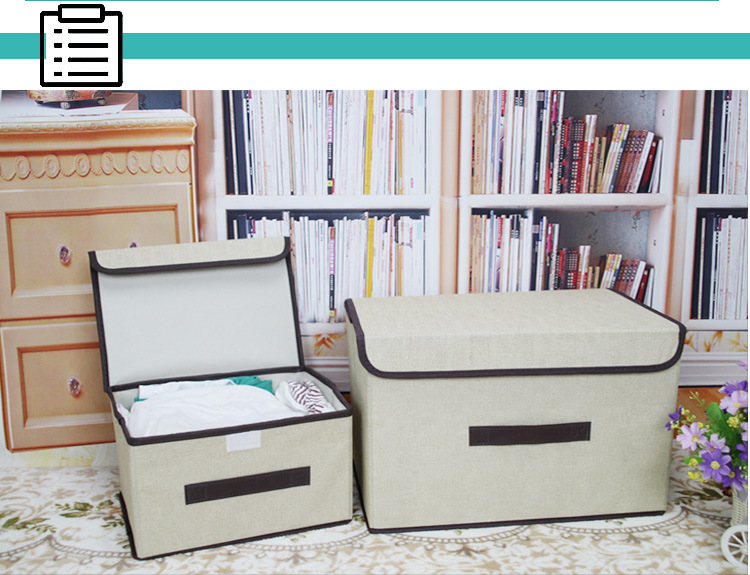 모조 린넨 직물 보관 상자 접이식 옷 잡화 뚜껑이있는 휴대용 방진 보관 상자 접이식 보관 상자 도매스토어 가기