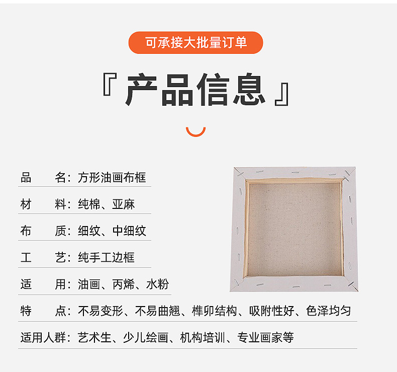 사각형 캔버스 프레임 아트 수채화 아크릴 유화 내부 프레임 순면 린넨 캔버스 프레임 유화판 DIY 미술 재료스토어 가기