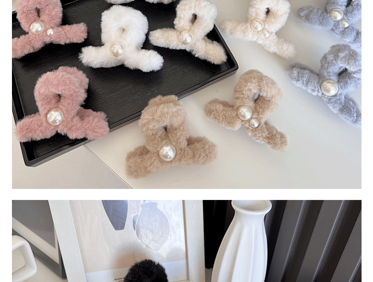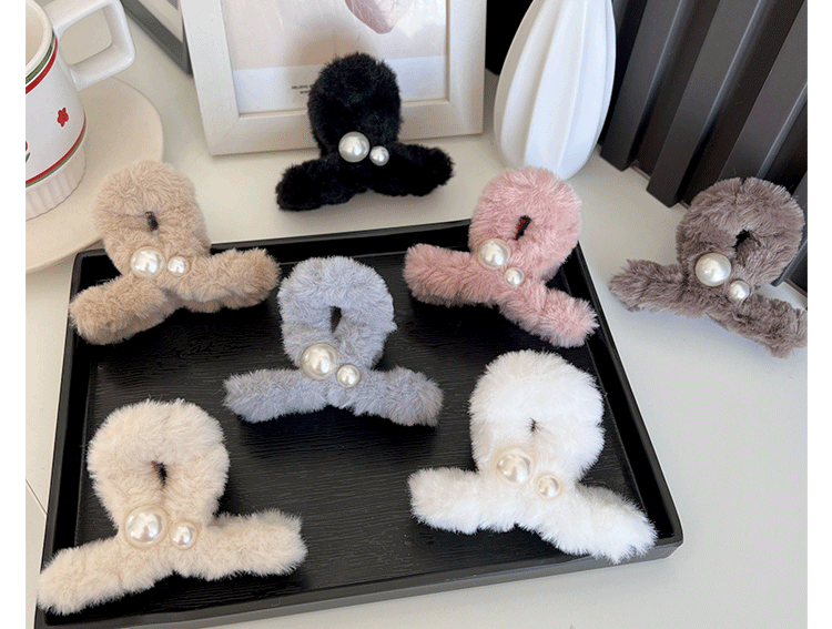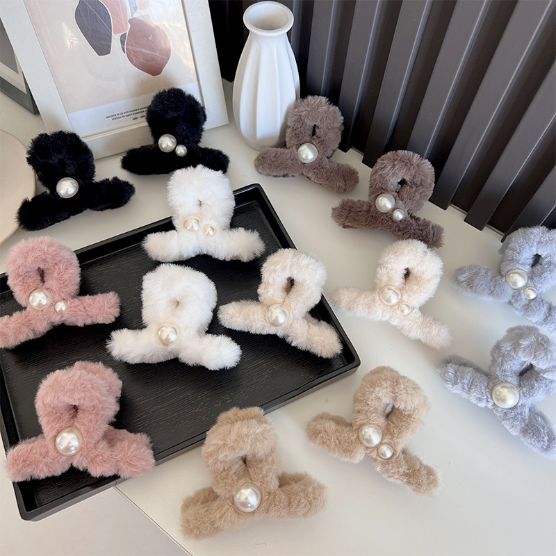 가을과 겨울 플러시 잡아 클립 상어 클립 간단한 진주 모자 고급 감각 틈새 하프 타이 헤어 그랩 헤어 클립 in 여성스토어 가기