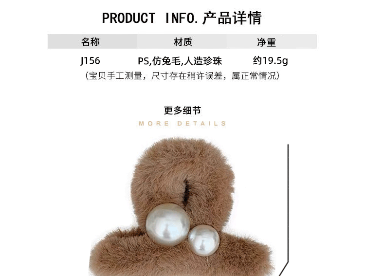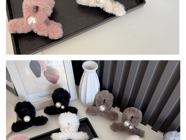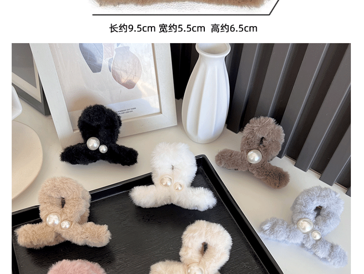 가을과 겨울 플러시 잡아 클립 상어 클립 간단한 진주 모자 고급 감각 틈새 하프 타이 헤어 그랩 헤어 클립 in 여성