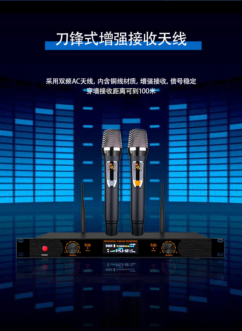 무선 마이크 1대2 U밴드 FM 주파수 무대 공연 회의실 가정용 KTV 전문가용 안티-하울링 마이크
