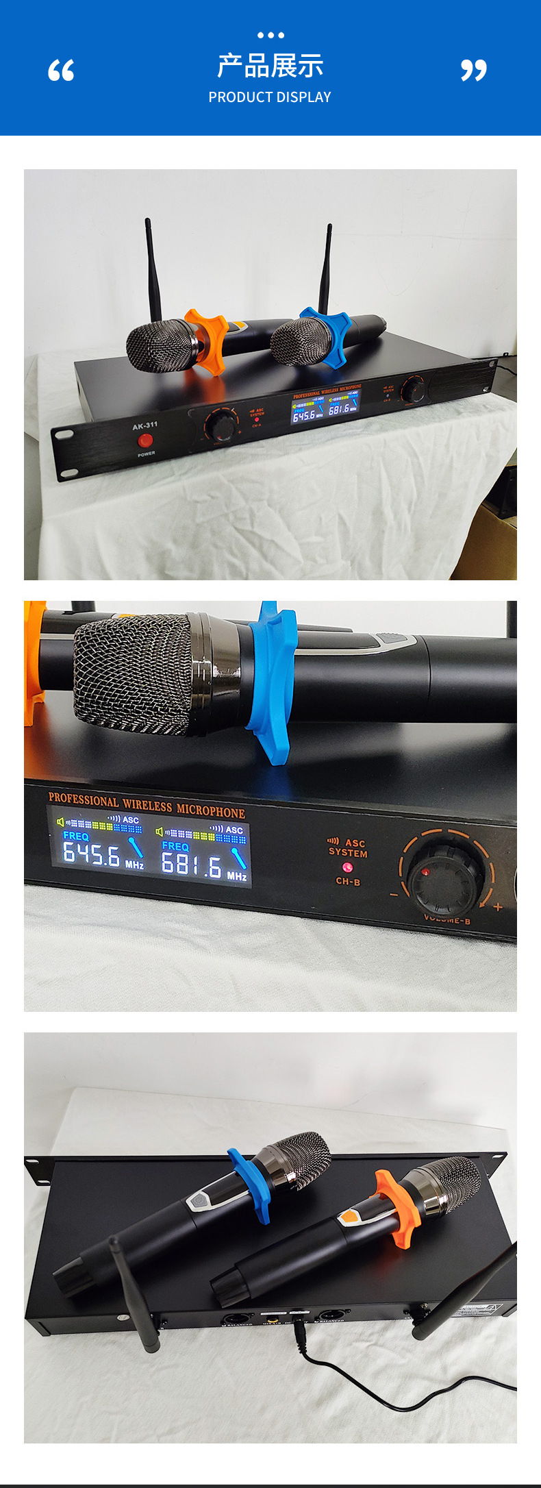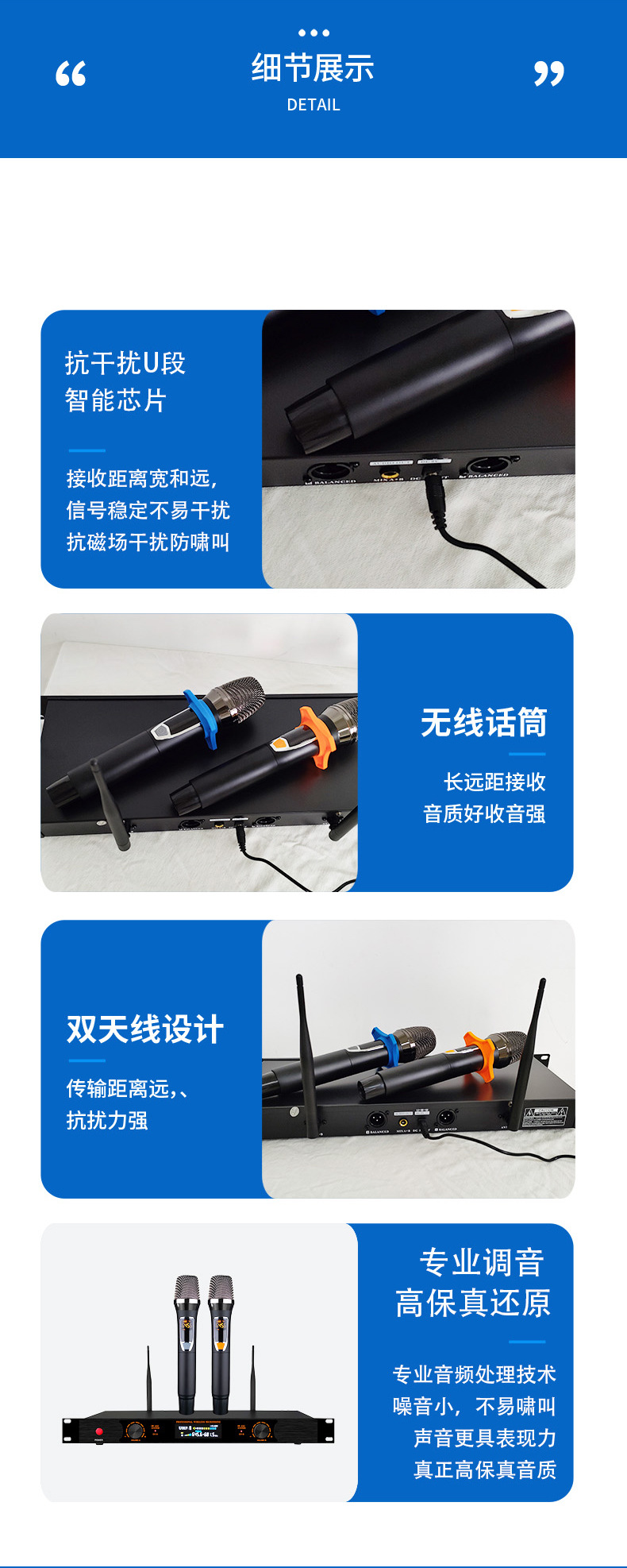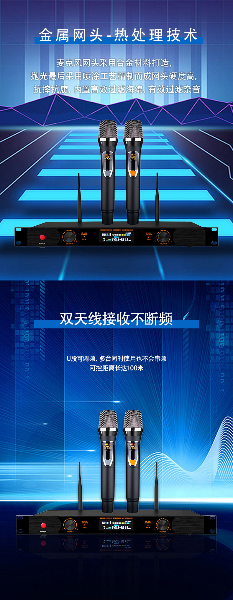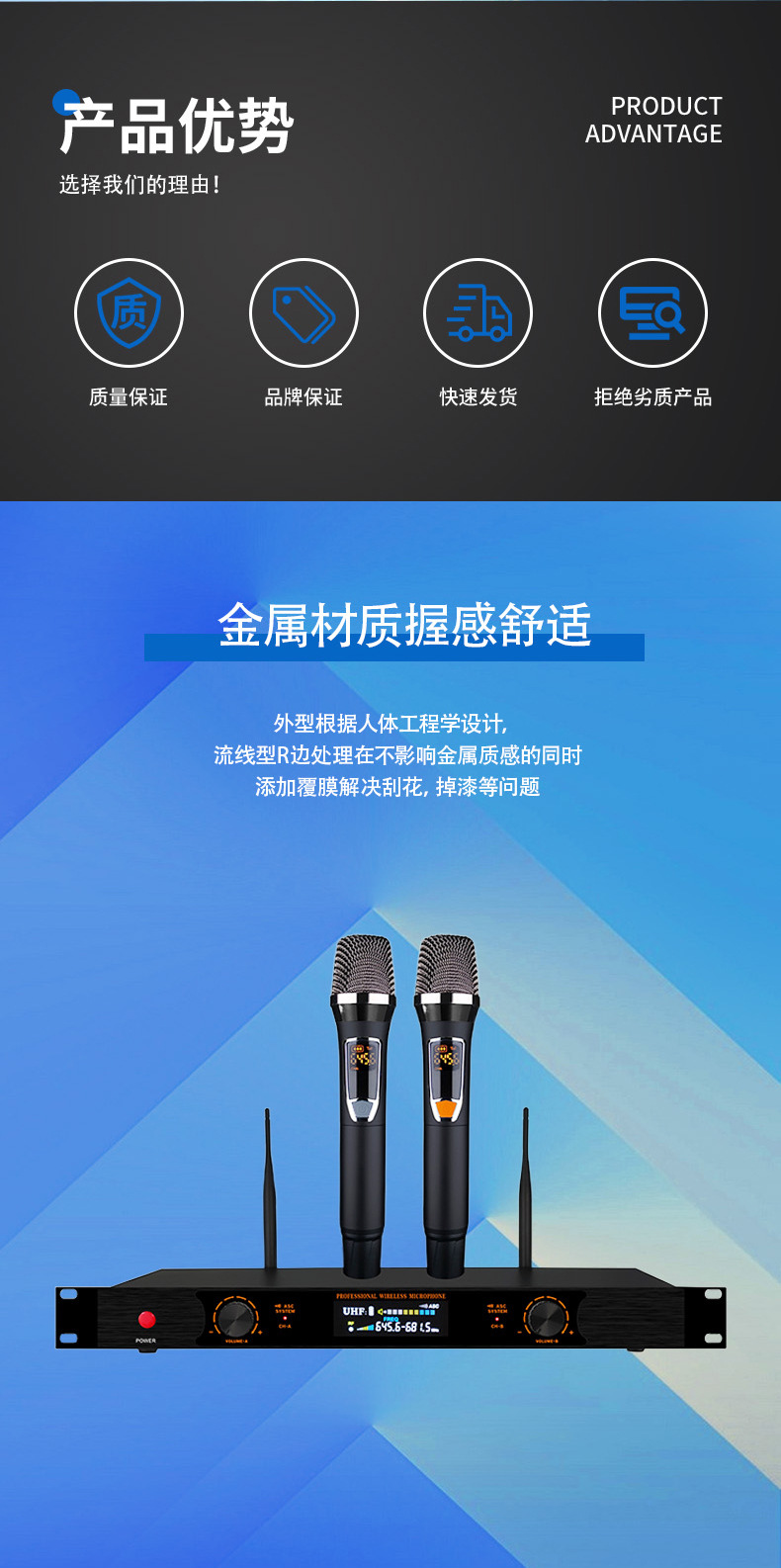 무선 마이크 1대2 U밴드 FM 주파수 무대 공연 회의실 가정용 KTV 전문가용 안티-하울링 마이크스토어 가기