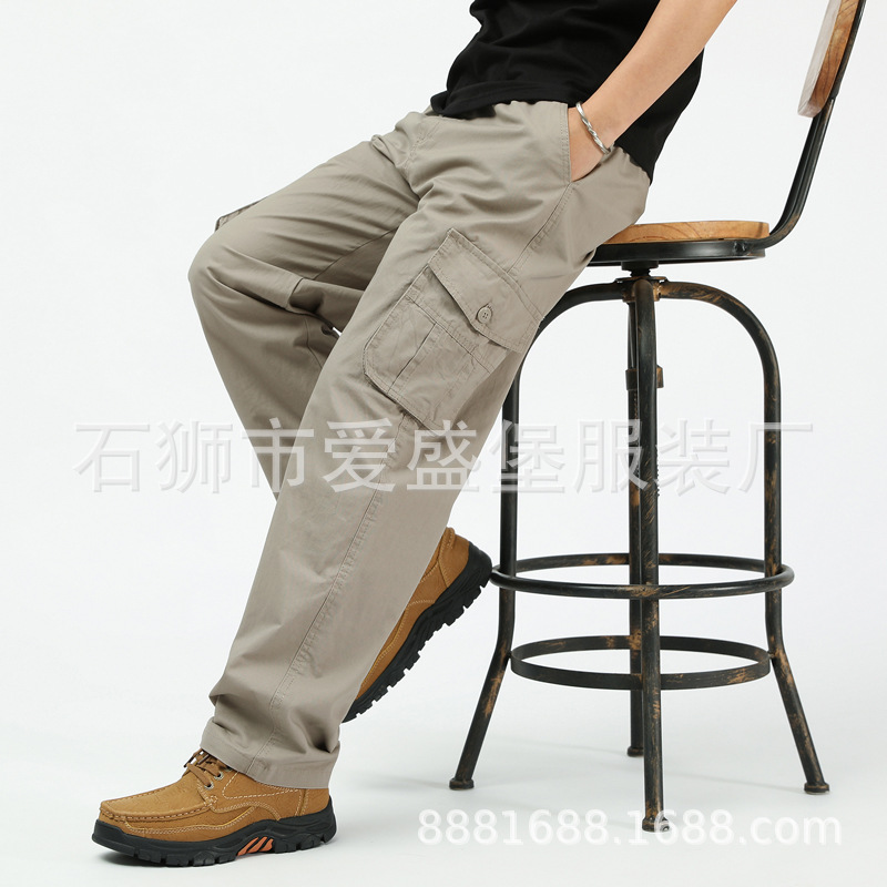 봄과 가을 중년 남성 캐주얼 바지 아빠의 긴 바지 중년 및 노인 느슨한 작업 플러스 사이즈 스포츠 바지스토어 가기