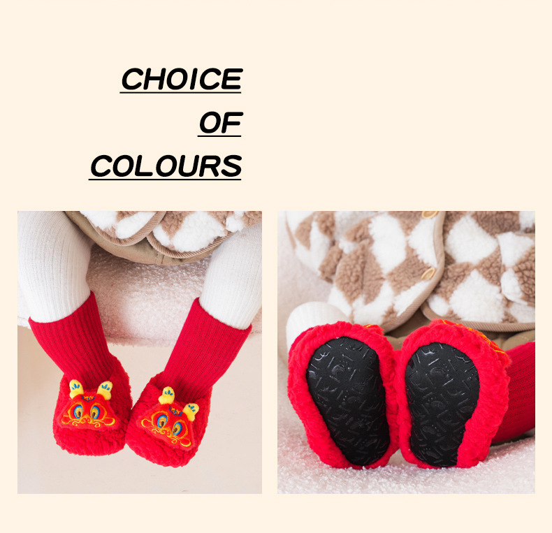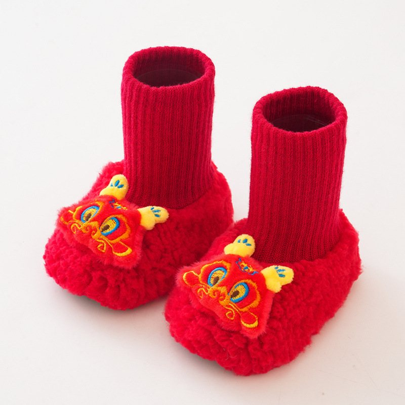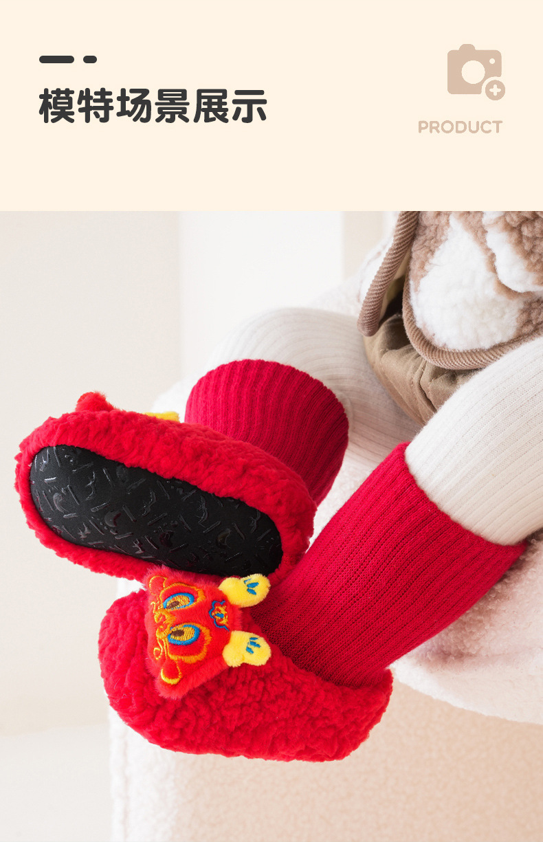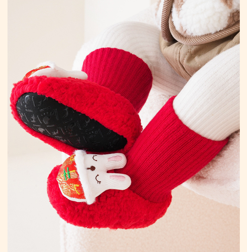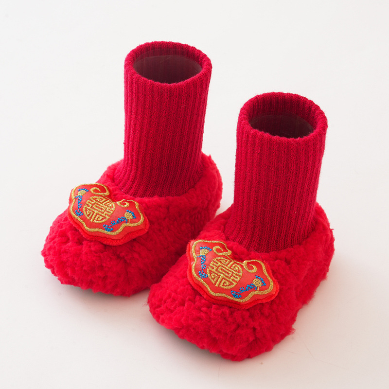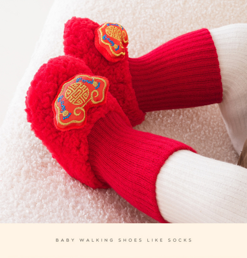 새해 아기 유아 신발 빨간 아기 바닥 신발 가을과 겨울 실내 미끄럼 방지 시원한 어린이 유아 신발 중간 높이