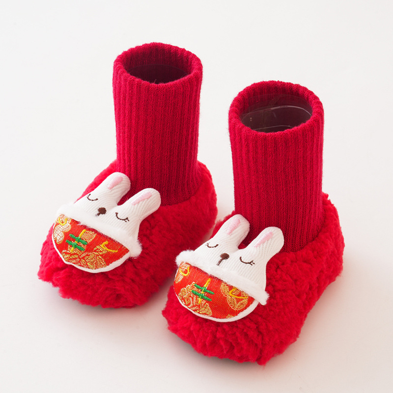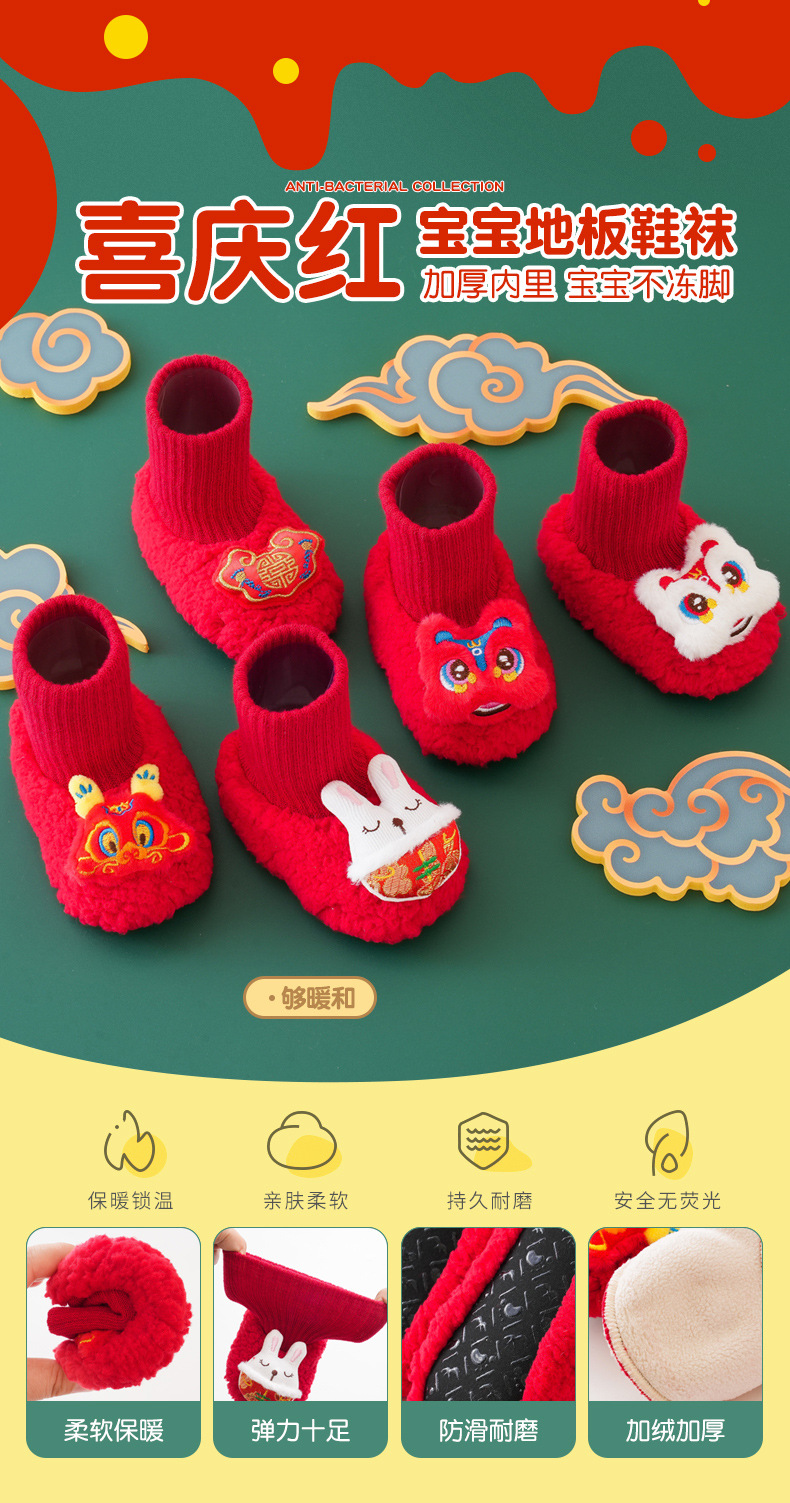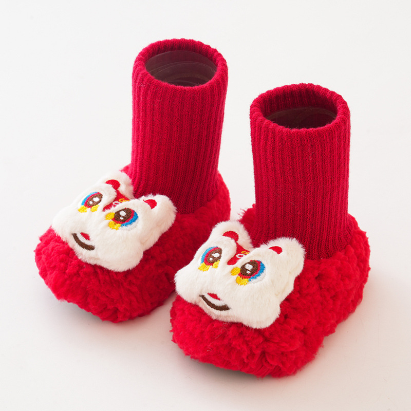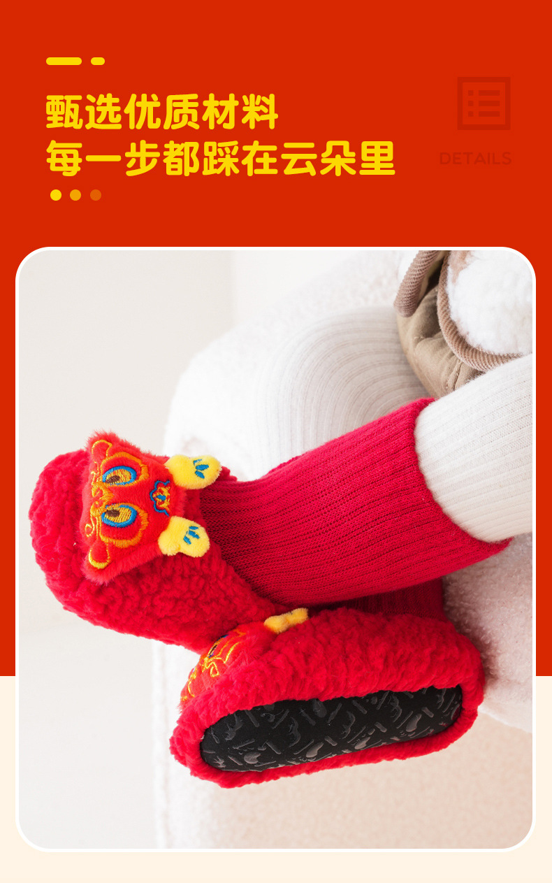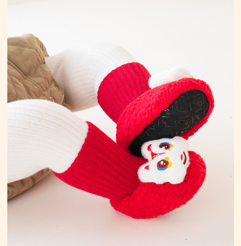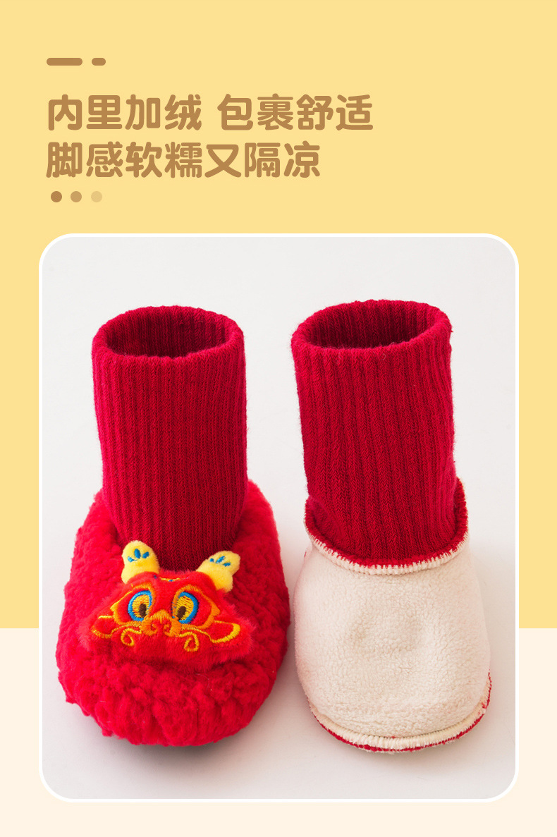 새해 아기 유아 신발 빨간 아기 바닥 신발 가을과 겨울 실내 미끄럼 방지 시원한 어린이 유아 신발 중간 높이